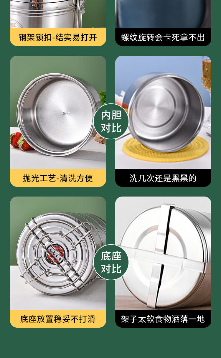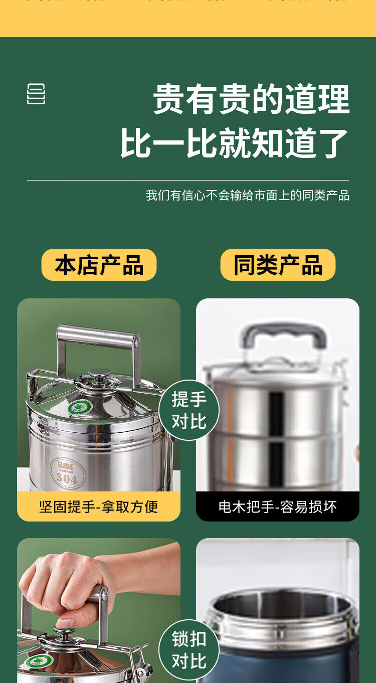 • 商品名称:顺家宜 304不锈钢保温饭盒提锅提篮可定制logo 14CM中空保温款五层 14CM中空保温款五层/个