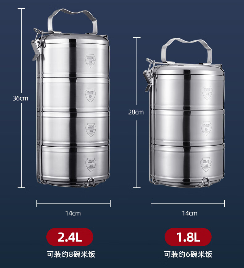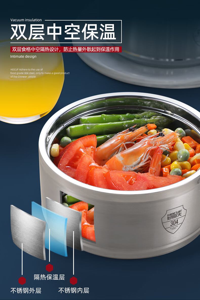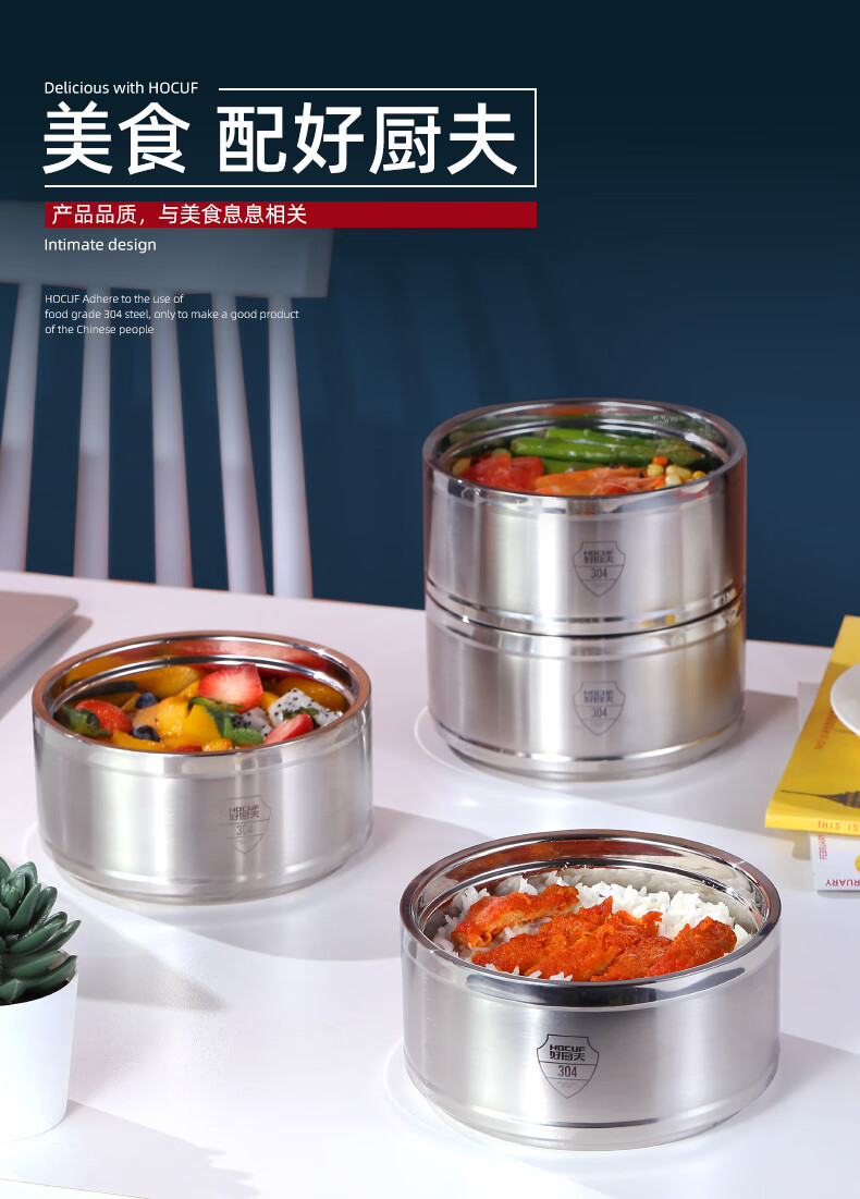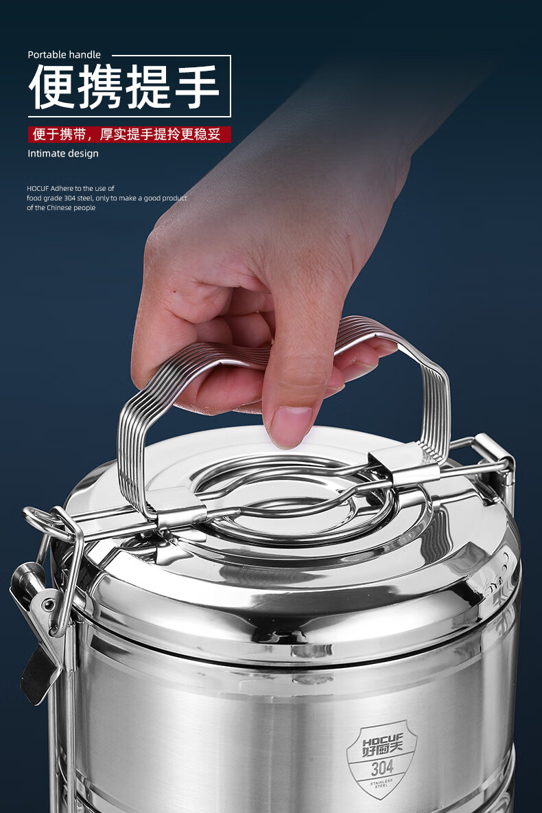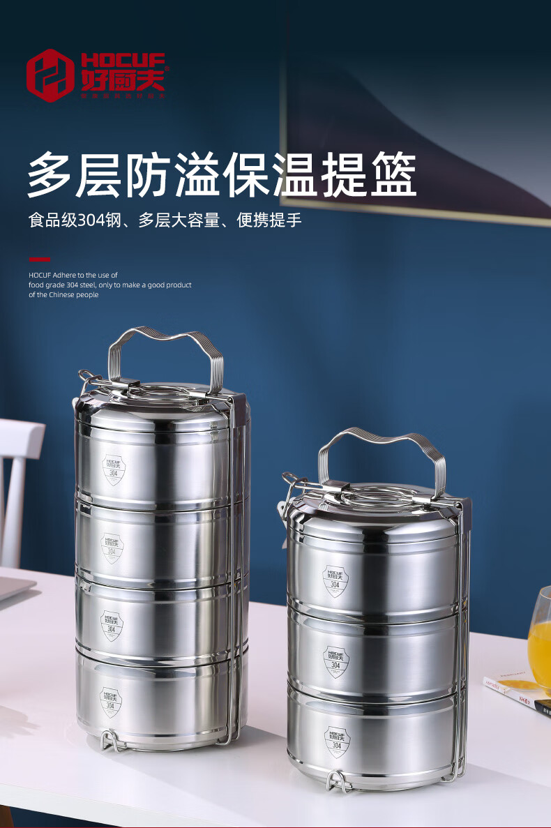 • 商品名称:好厨夫(HOCUF)保温饭盒多层饭盒大容量 304不锈钢防溢保温提篮4层(2.4L) 防溢保温提篮4层(3.2L)/个