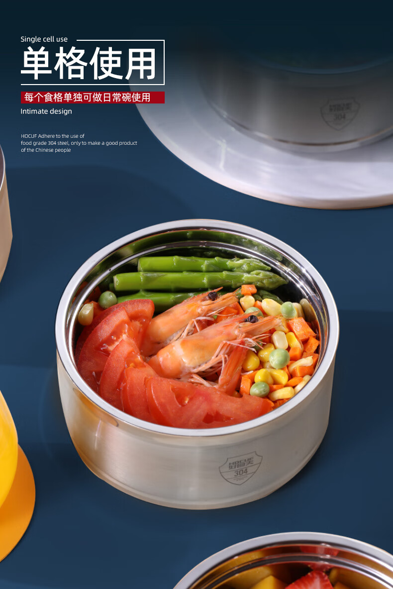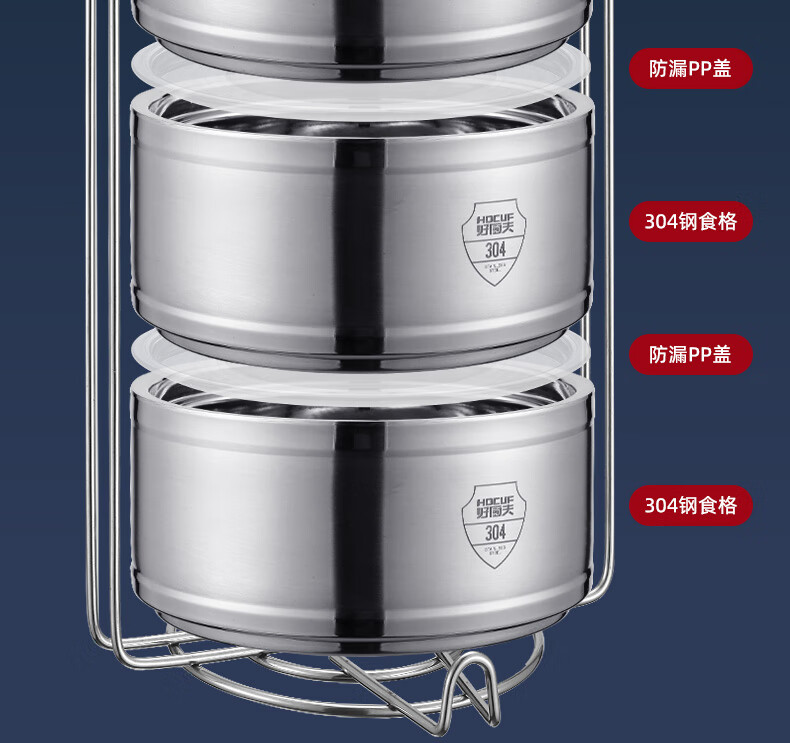 商品名称: 好厨夫(HOCUF)保温饭盒多层饭盒大容量 304不锈钢防溢保温提篮4层(2.4L) 防溢保温提篮4层(3.2L)/个