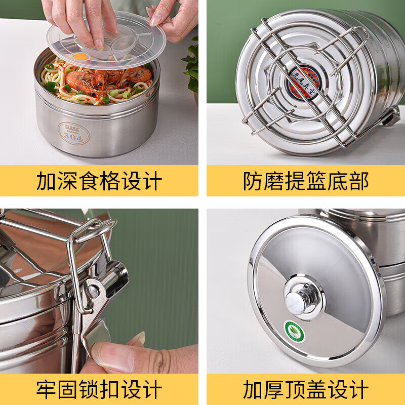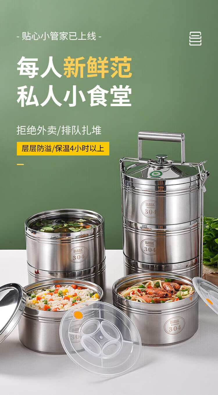 • 商品名称:顺家宜 304不锈钢保温饭盒提锅提篮可定制logo 18CM中空保温款五层 18CM中空保温款五层/个