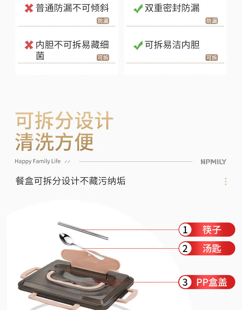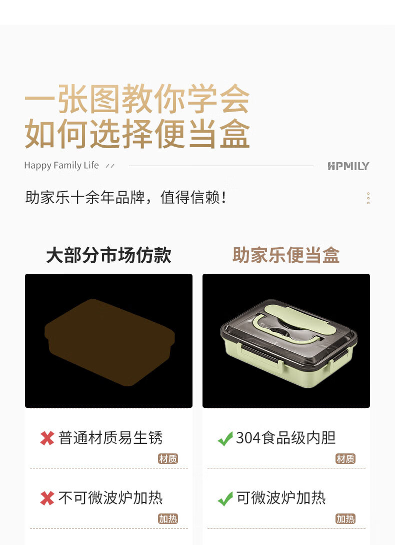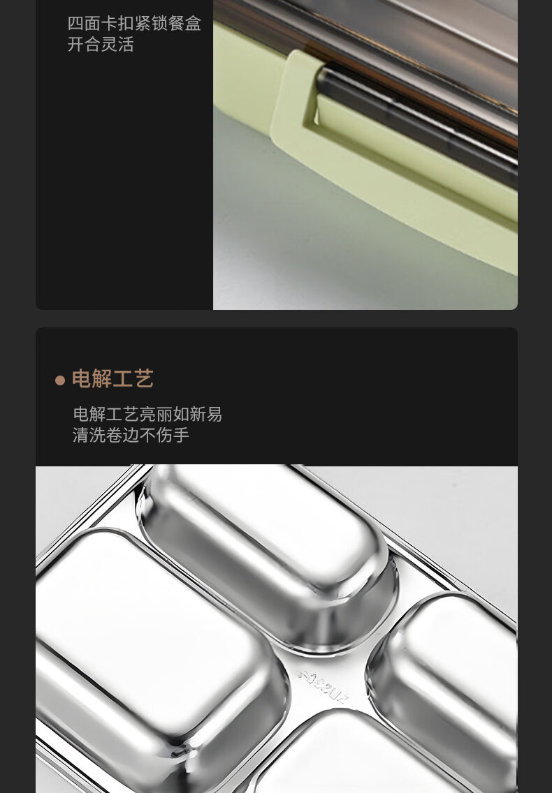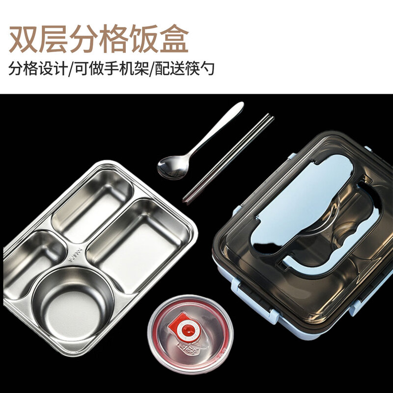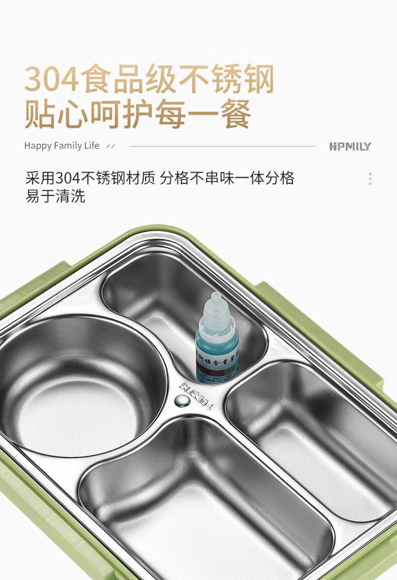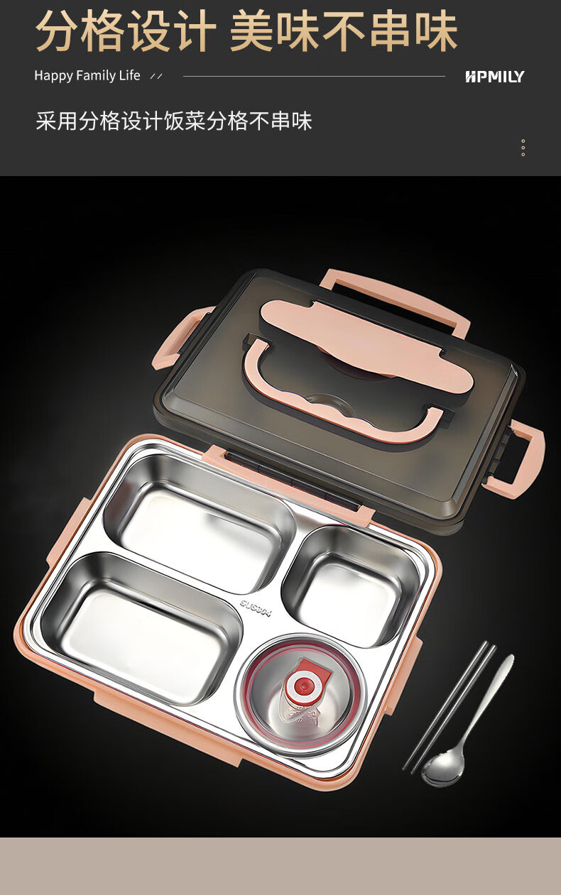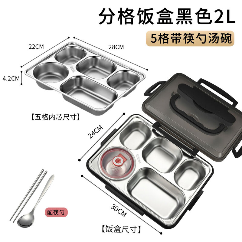 • 商品名称:助家乐(HPMILY)便当盒304不锈钢保温饭盒学生饭堂打饭餐盘送饭户外快餐盒加热2L Y0425-餐盒黑色-五格/个