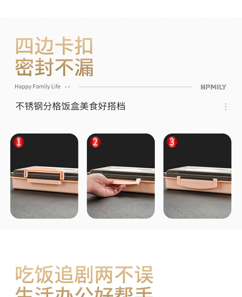 厨具  > 厨房储物  > 饭盒/提锅  >  助家乐/HPMILY  >  助家乐(HPMILY)便当盒304不锈钢保温饭盒学生饭堂打饭餐盘送饭户外快餐盒加热2L Y0425-餐盒黑色-五格/个