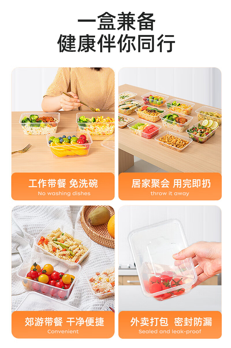• 商品名称:丽佳厨具 一次性饭盒长方形透明塑料快餐盒餐具300套装750ml 750ml/箱