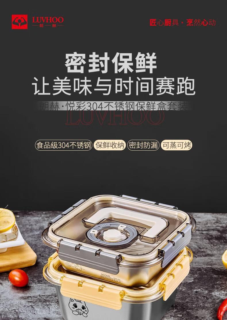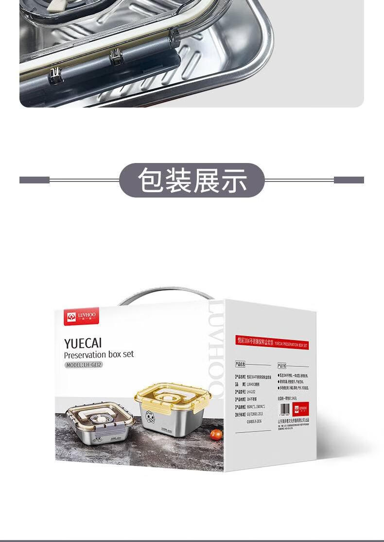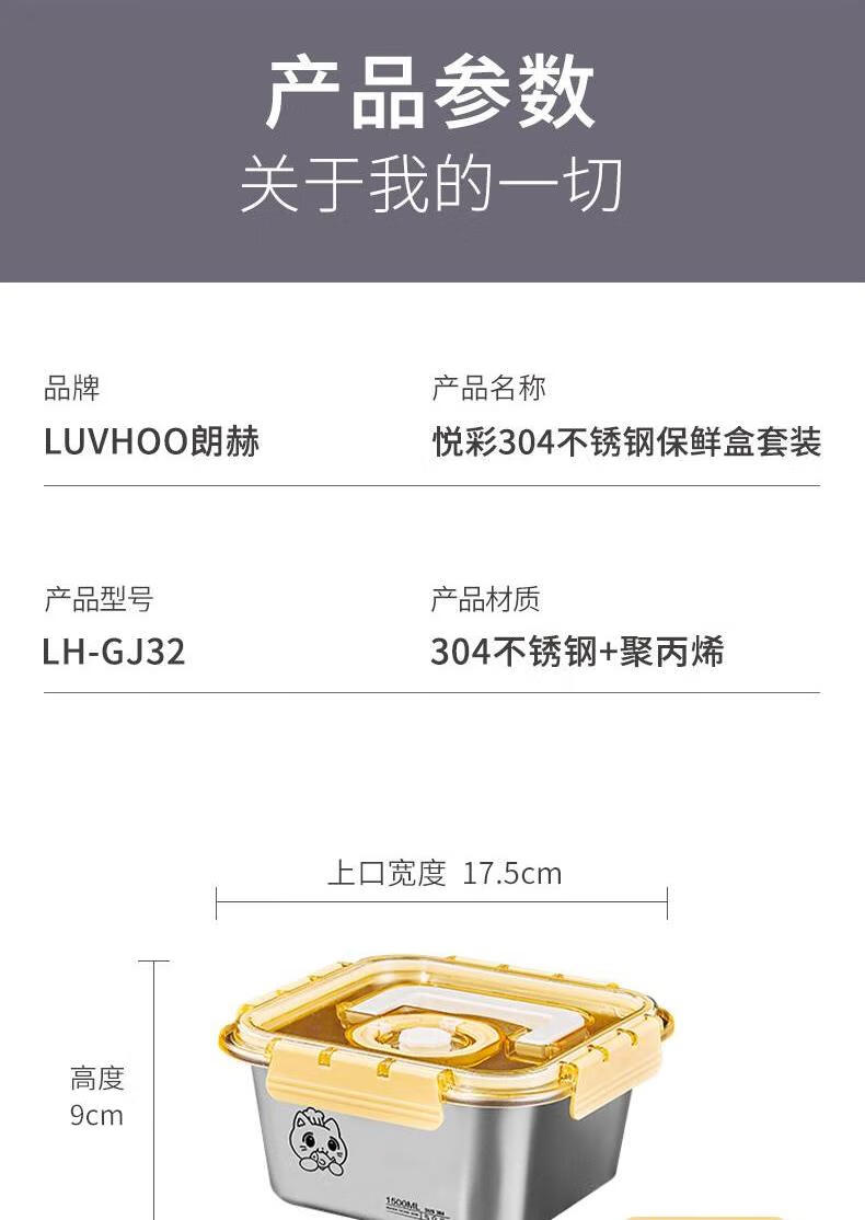 • 商品名称:LUVHOO悦彩304不锈钢保鲜盒套装LH-GJ32 LH-GJ32/套