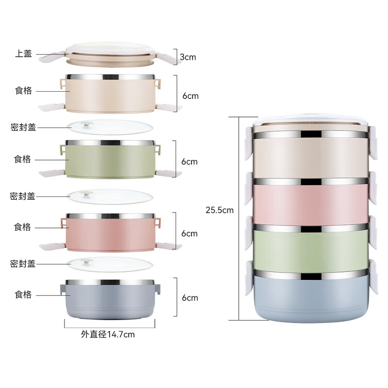 厨具  > 厨房储物  > 饭盒/提锅  >  金钥匙/GOLDEN KEY  >  金钥匙(GOLDEN KEY)304不锈钢 四层保温饭盒多层可组合马卡龙便当盒GK-2800BD-4 304不锈钢/个