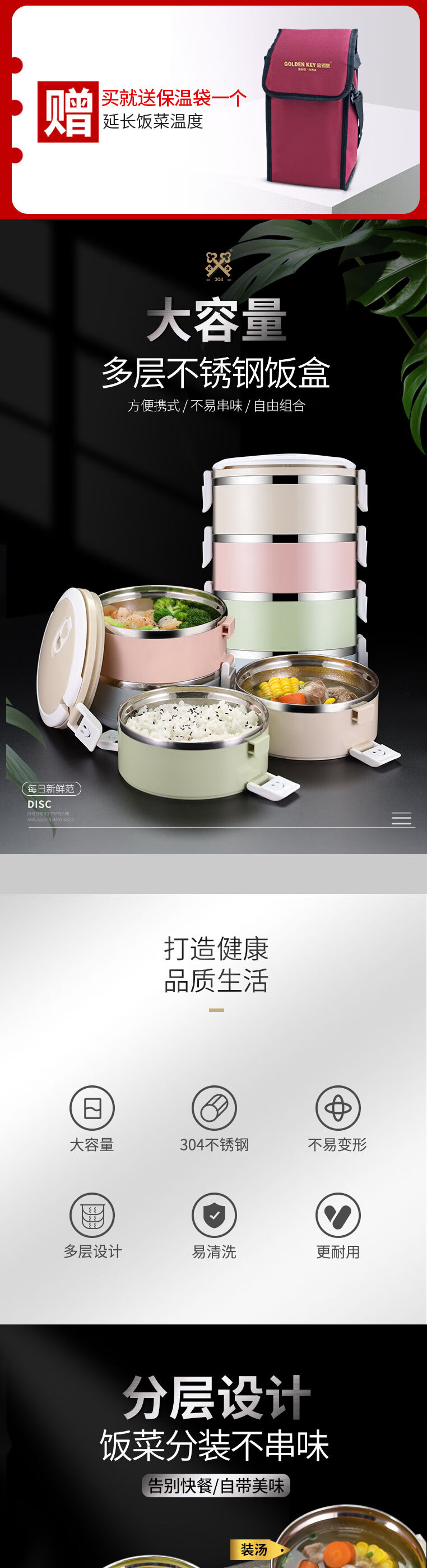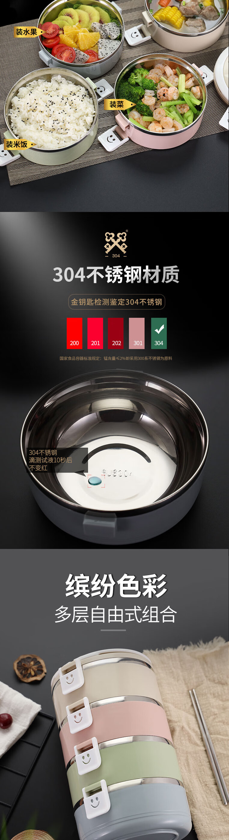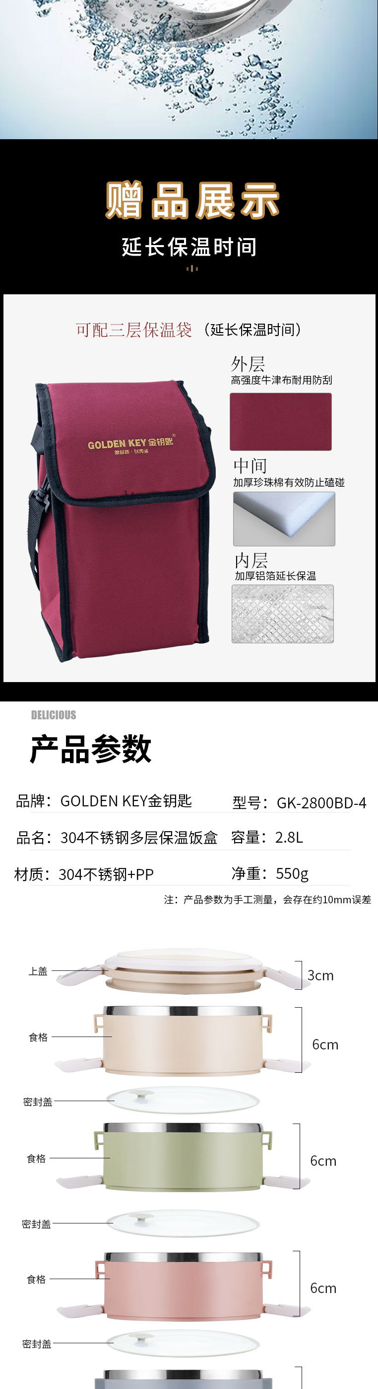 • 商品名称:金钥匙(GOLDEN KEY)304不锈钢 四层保温饭盒多层可组合马卡龙便当盒GK-2800BD-4 304不锈钢/个