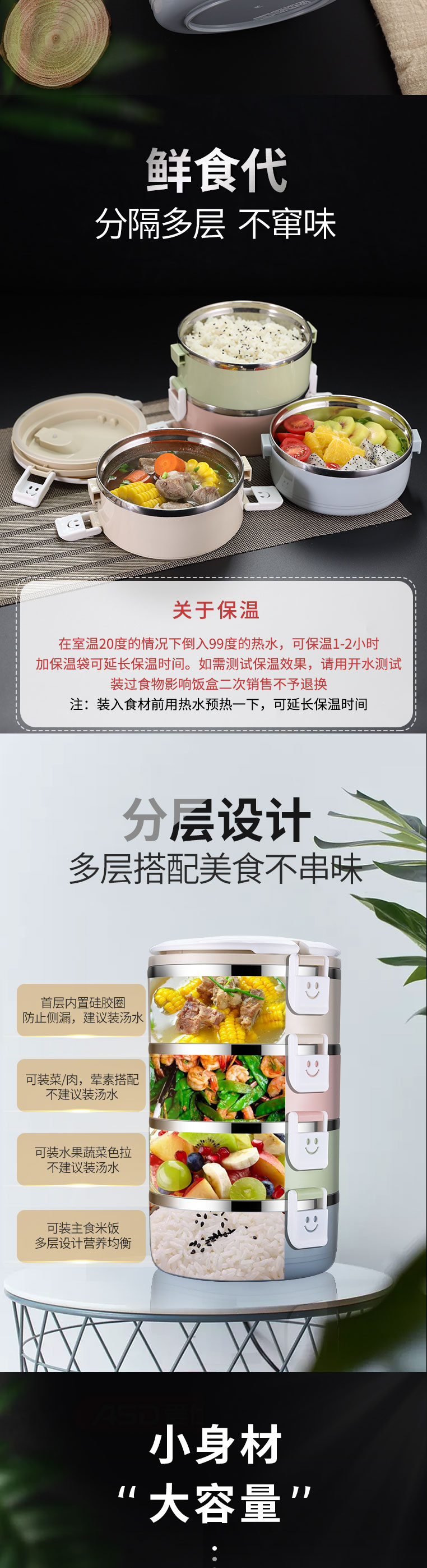 包装清单: 不锈钢锅底*1 分层盛放容器*3 盖子*1 说明书*1