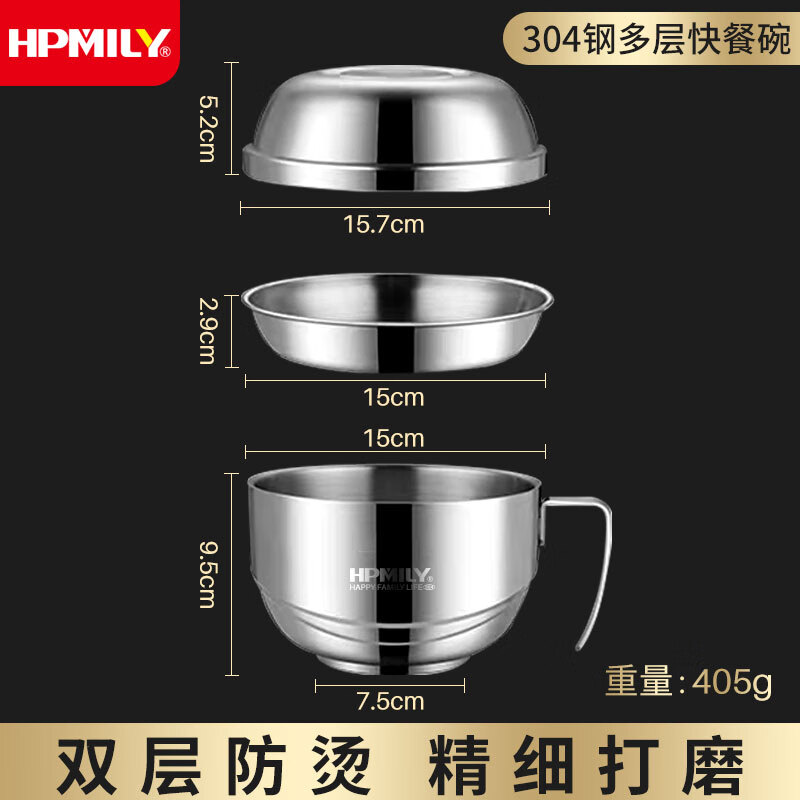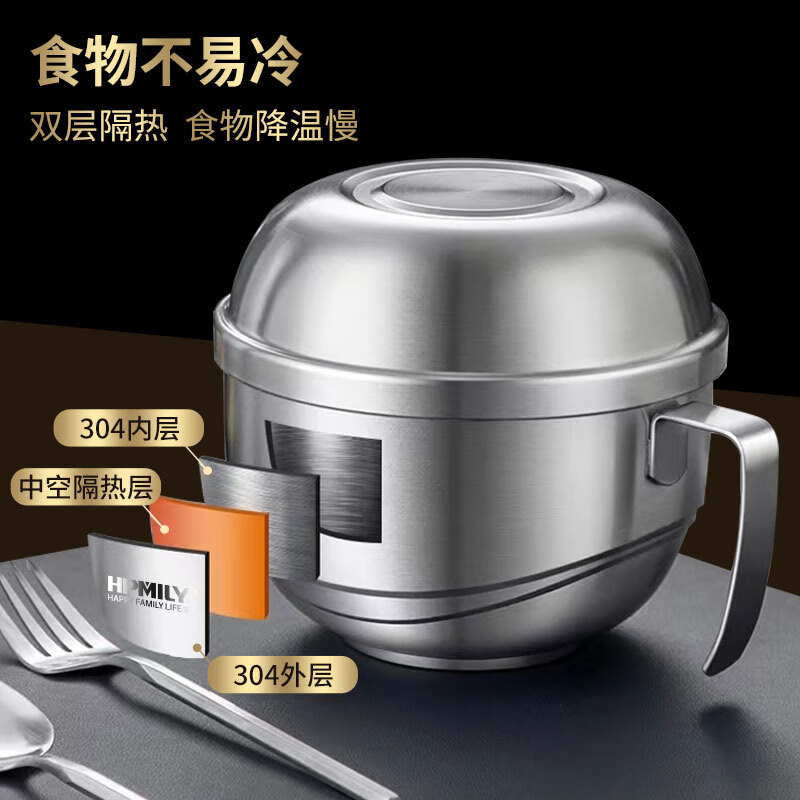 助家乐(HPMILY)304不锈钢快餐杯上班族食堂饭盒打饭餐盒学生带盖碗泡面碗杯1.15L HPM516-1.15L/个