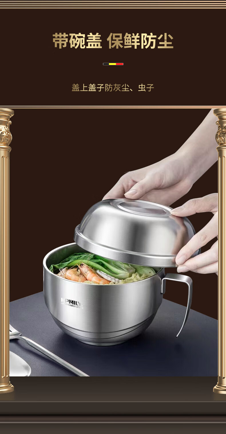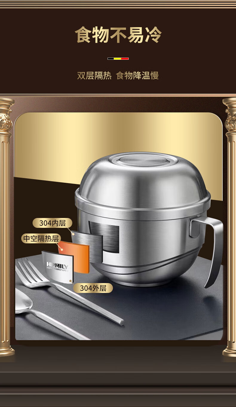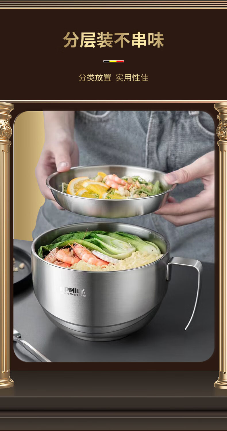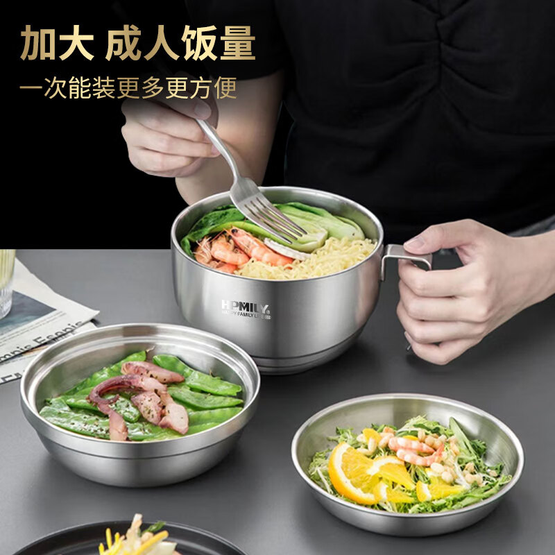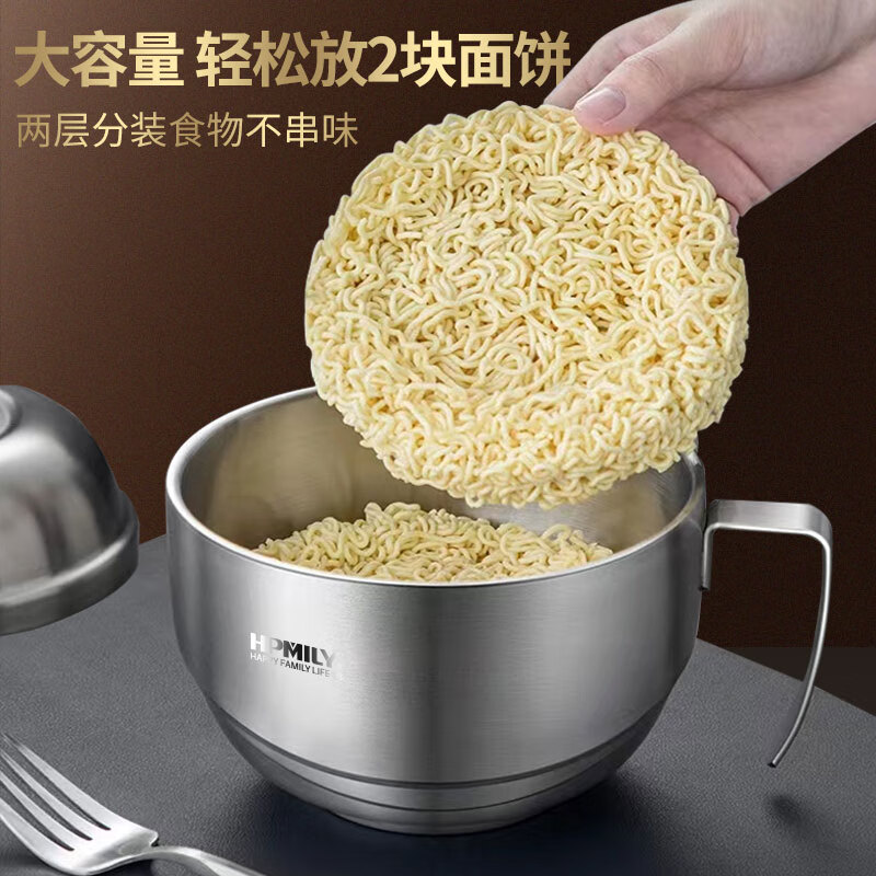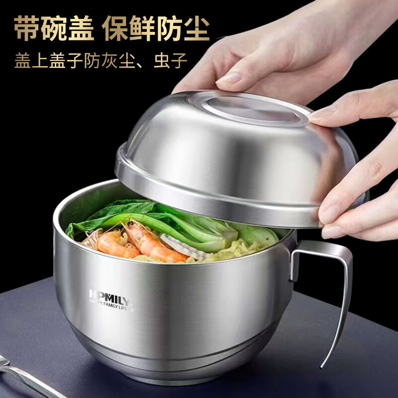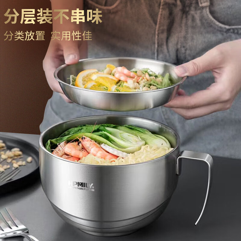 厨具  > 厨房储物  > 饭盒/提锅  >  助家乐/HPMILY  >  助家乐(HPMILY)304不锈钢快餐杯上班族食堂饭盒打饭餐盒学生带盖碗泡面碗杯1.15L HPM516-1.15L/个