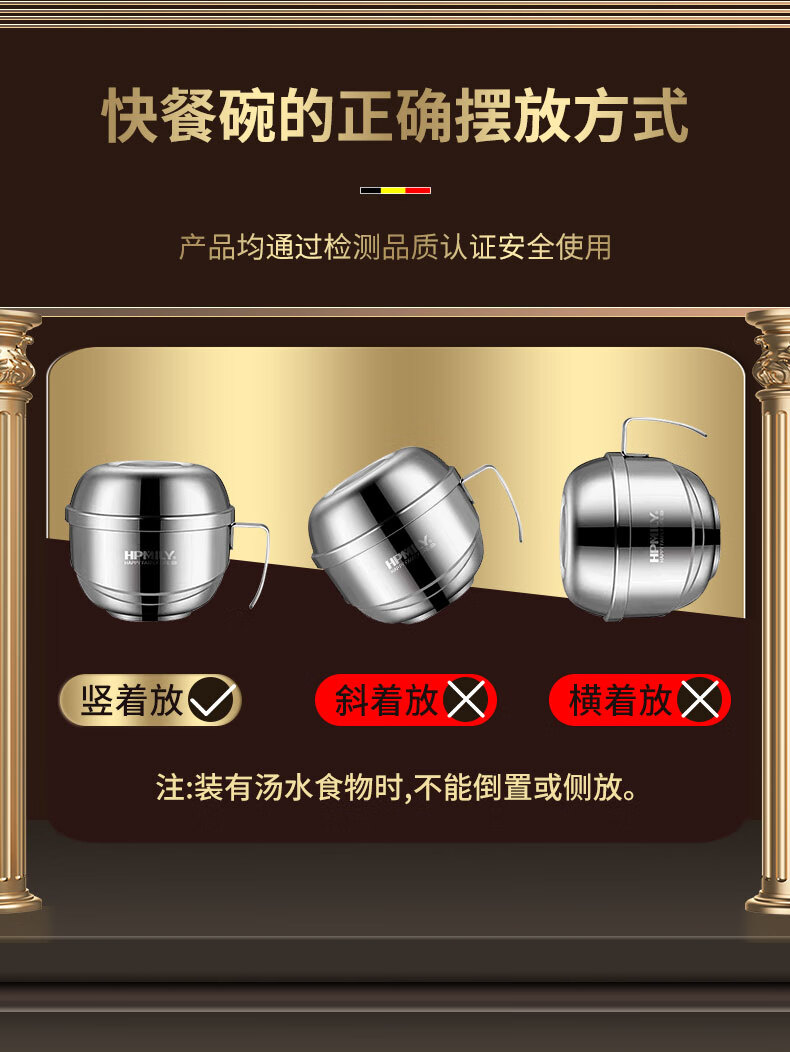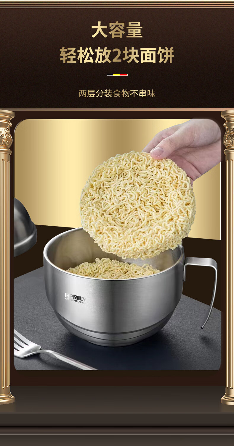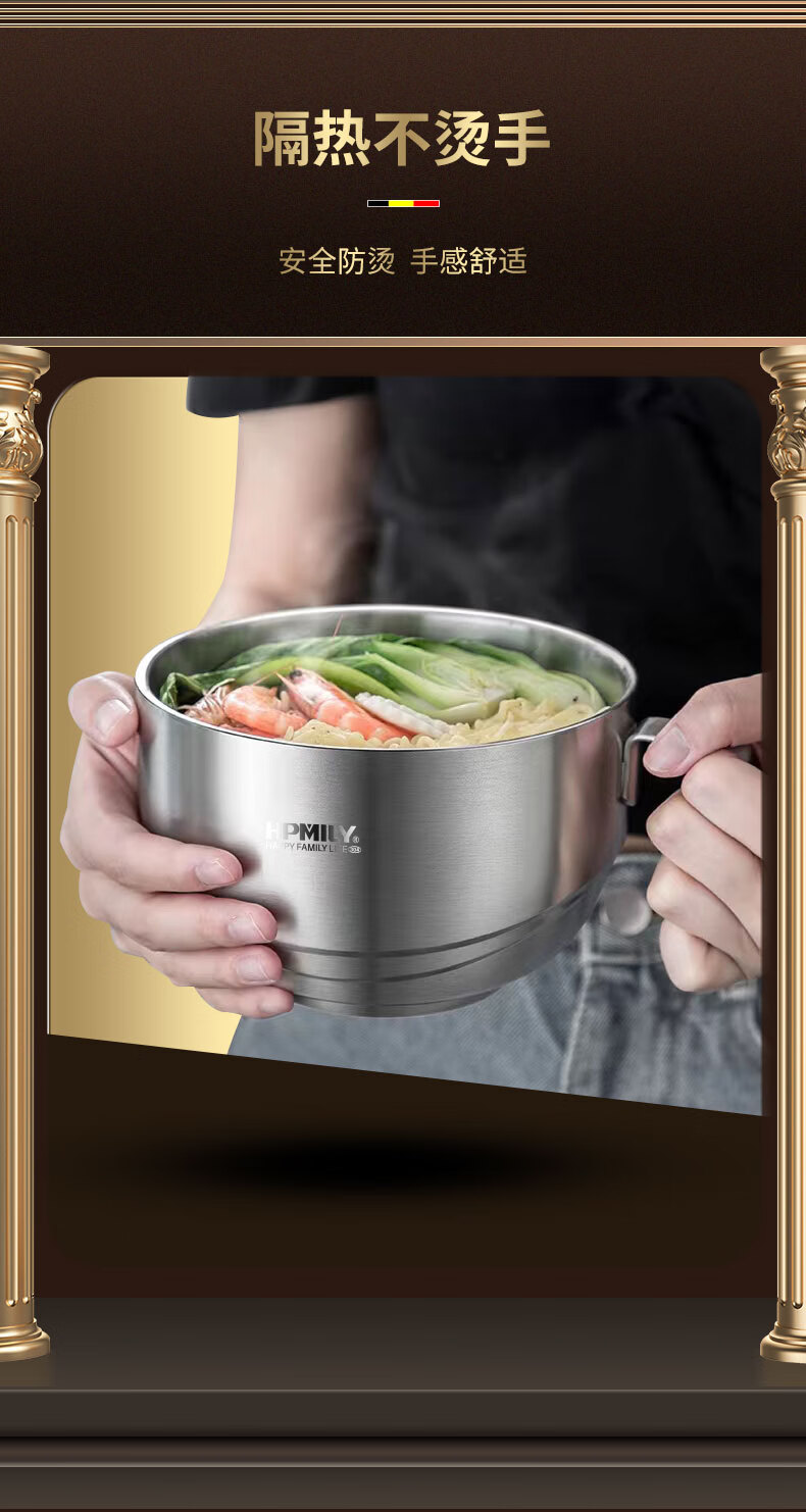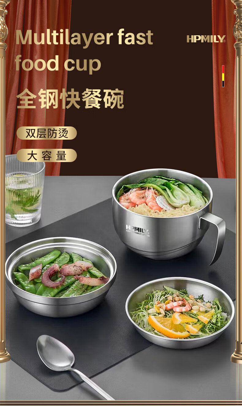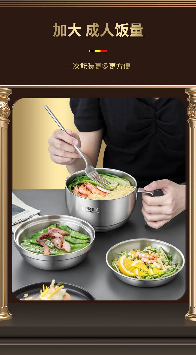 厨具  > 厨房储物  > 饭盒/提锅  >  助家乐/HPMILY  >  助家乐(HPMILY)304不锈钢快餐杯上班族食堂饭盒打饭餐盒学生带盖碗泡面碗杯1.15L HPM516-1.15L/个