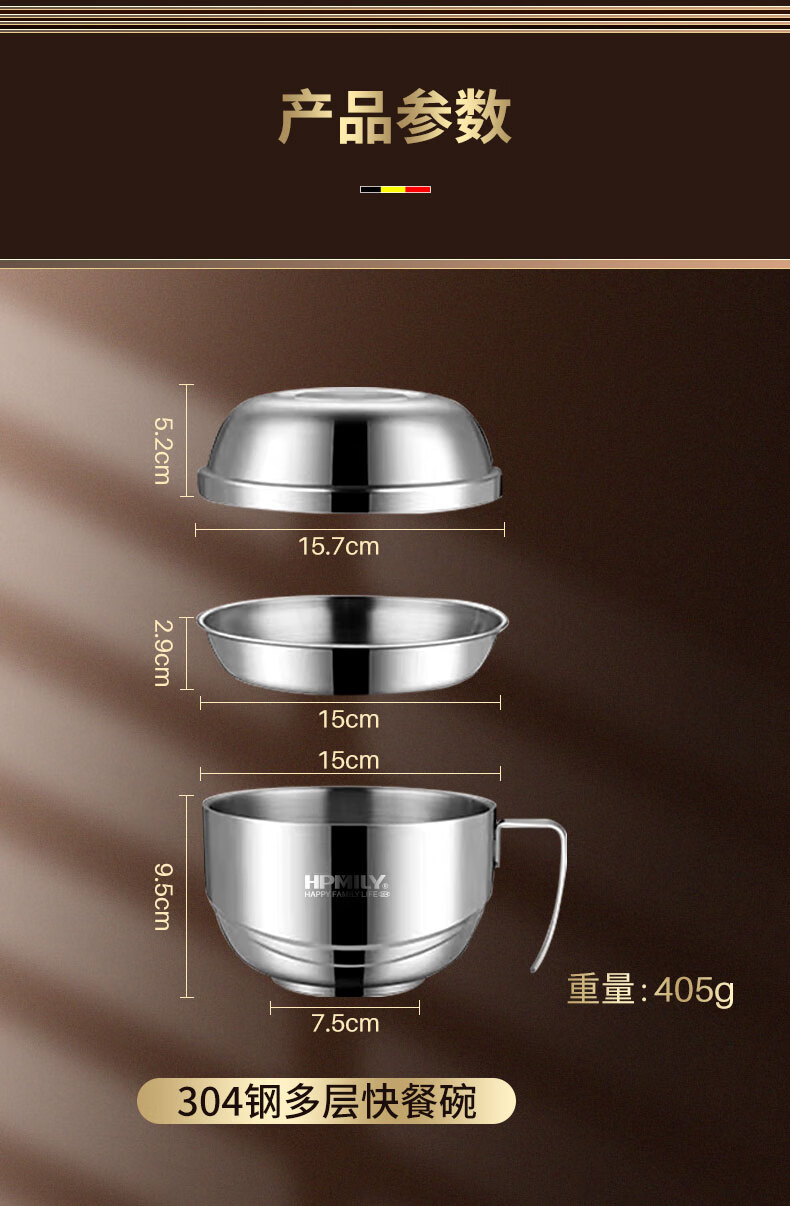 商品名称: 助家乐(HPMILY)304不锈钢快餐杯上班族食堂饭盒打饭餐盒学生带盖碗泡面碗杯1.15L HPM516-1.15L/个