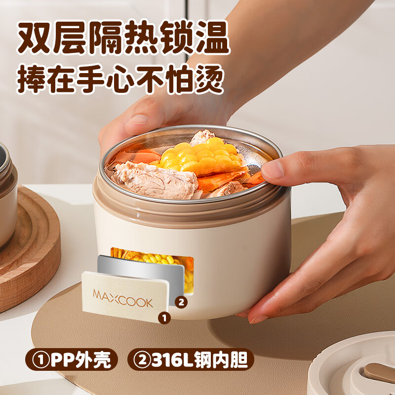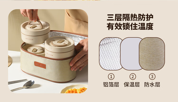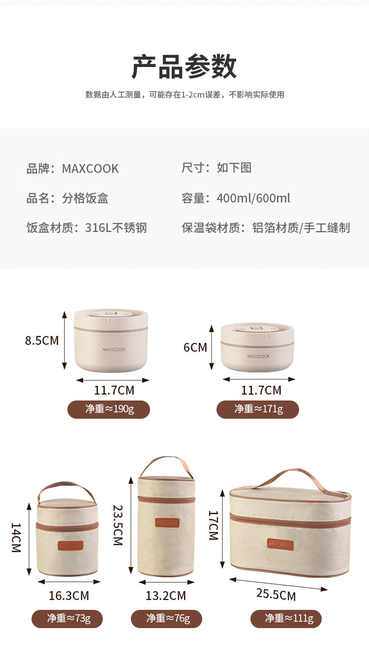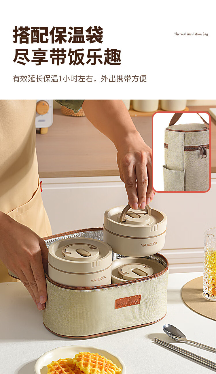 厨具  > 厨房储物  > 饭盒/提锅  >  美厨/maxcook  >  美厨(maxcook)保温饭盒 316L不锈钢便当盒微波炉加热学生上班餐盒配袋MCFT4442 316L不锈钢饭盒餐盒/个