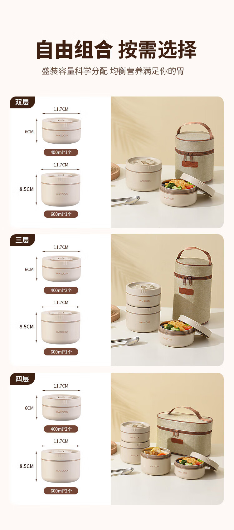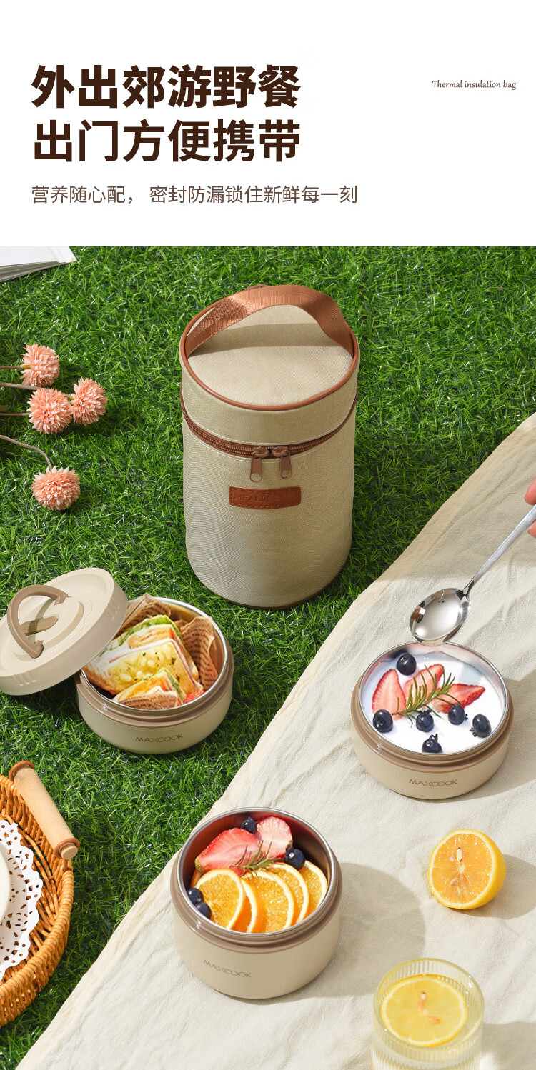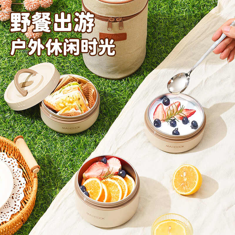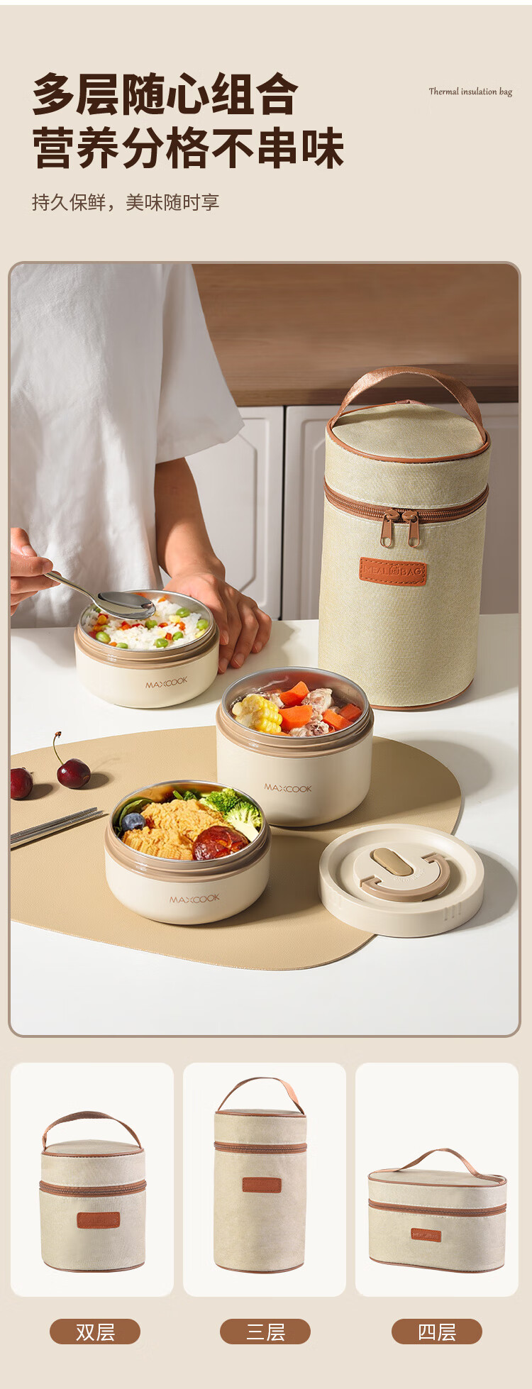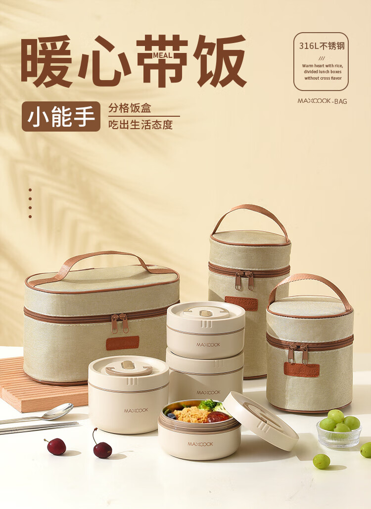 美厨(maxcook)保温饭盒 316L不锈钢便当盒微波炉加热学生上班餐盒配袋MCFT4442 316L不锈钢饭盒餐盒/个