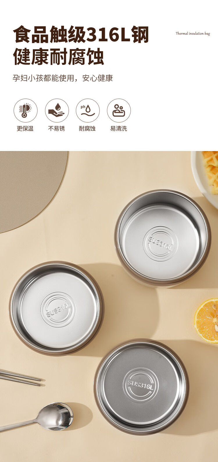 • 商品名称:美厨(maxcook)保温饭盒 316L不锈钢便当盒微波炉加热学生上班餐盒配袋MCFT4442 316L不锈钢饭盒餐盒/个