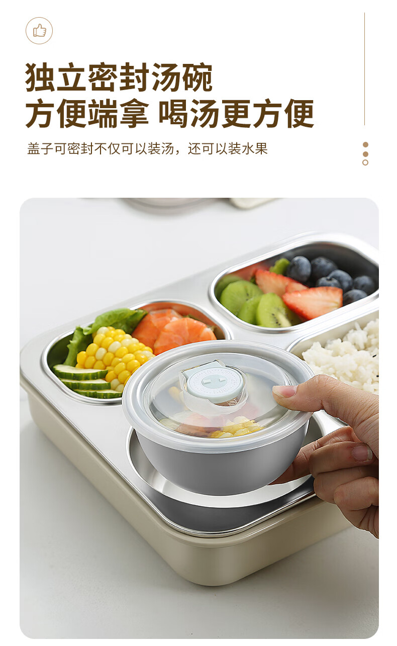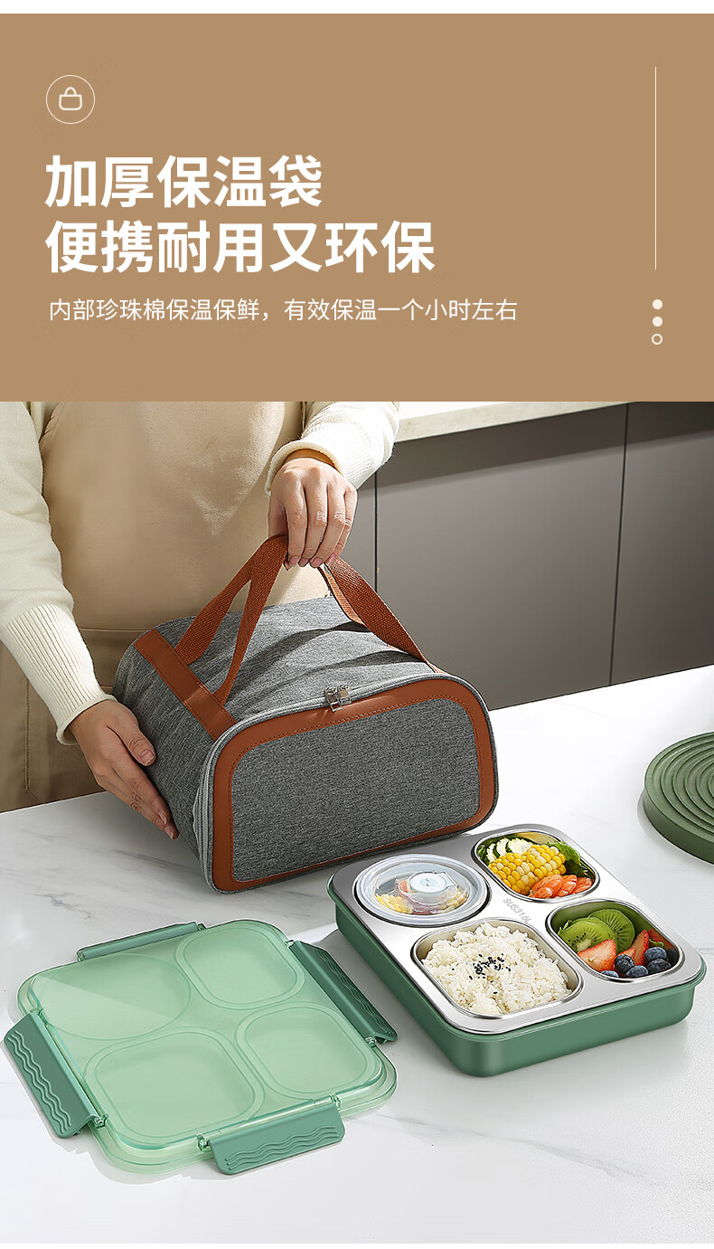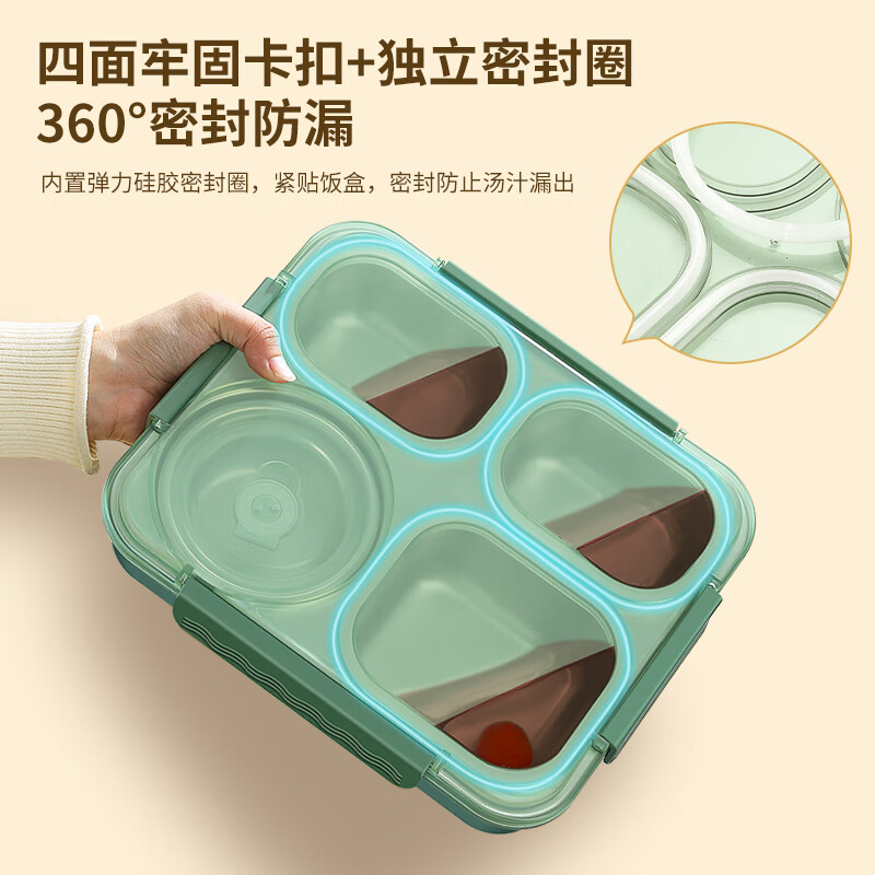 厨具  > 厨房储物  > 饭盒/提锅  >  莱柏顿  >  莱柏顿316L不锈钢饭盒学生餐盒密封保温餐盒上班族分格便当盒定制logo 316L饭盒-绿/盒