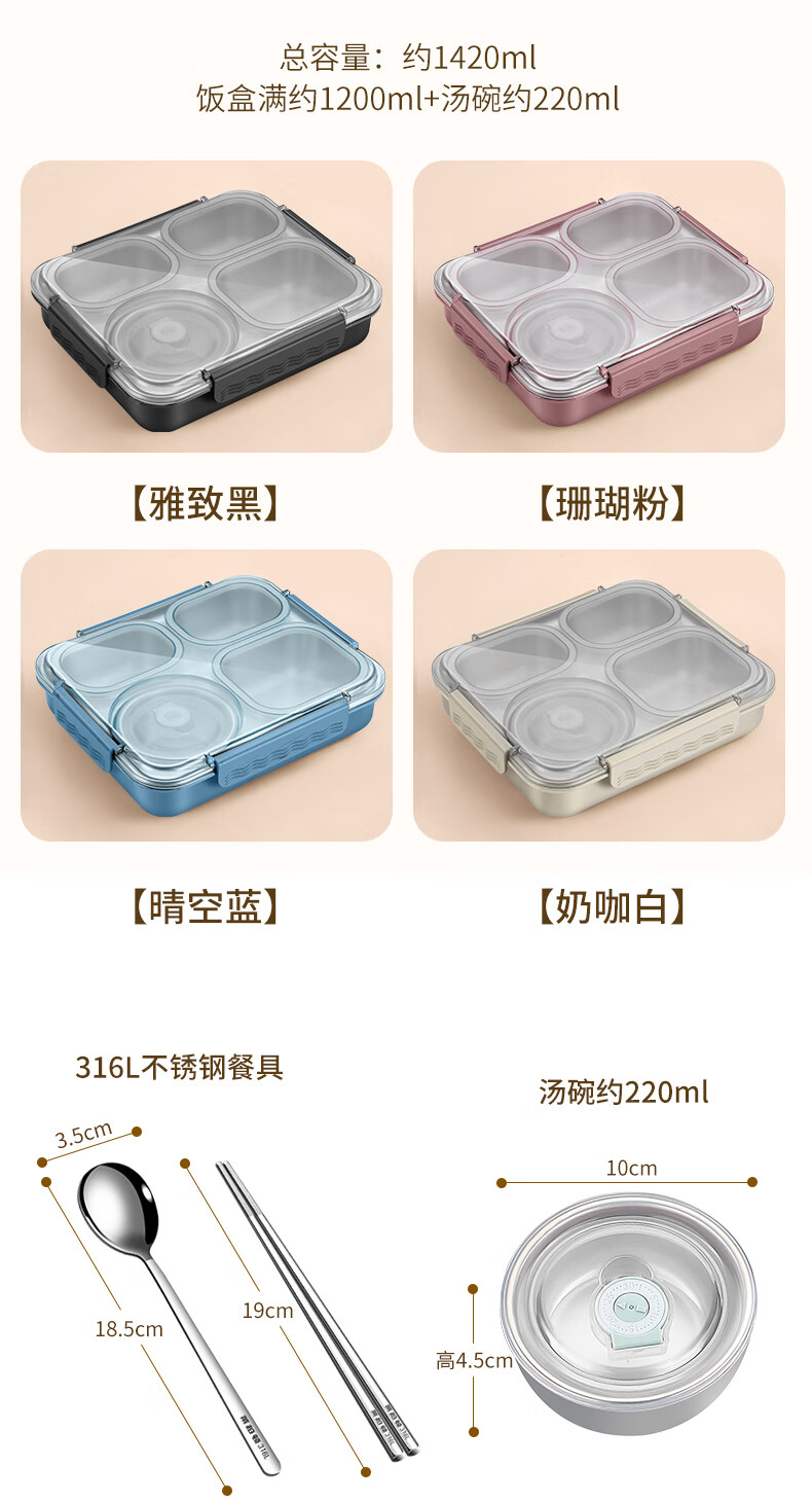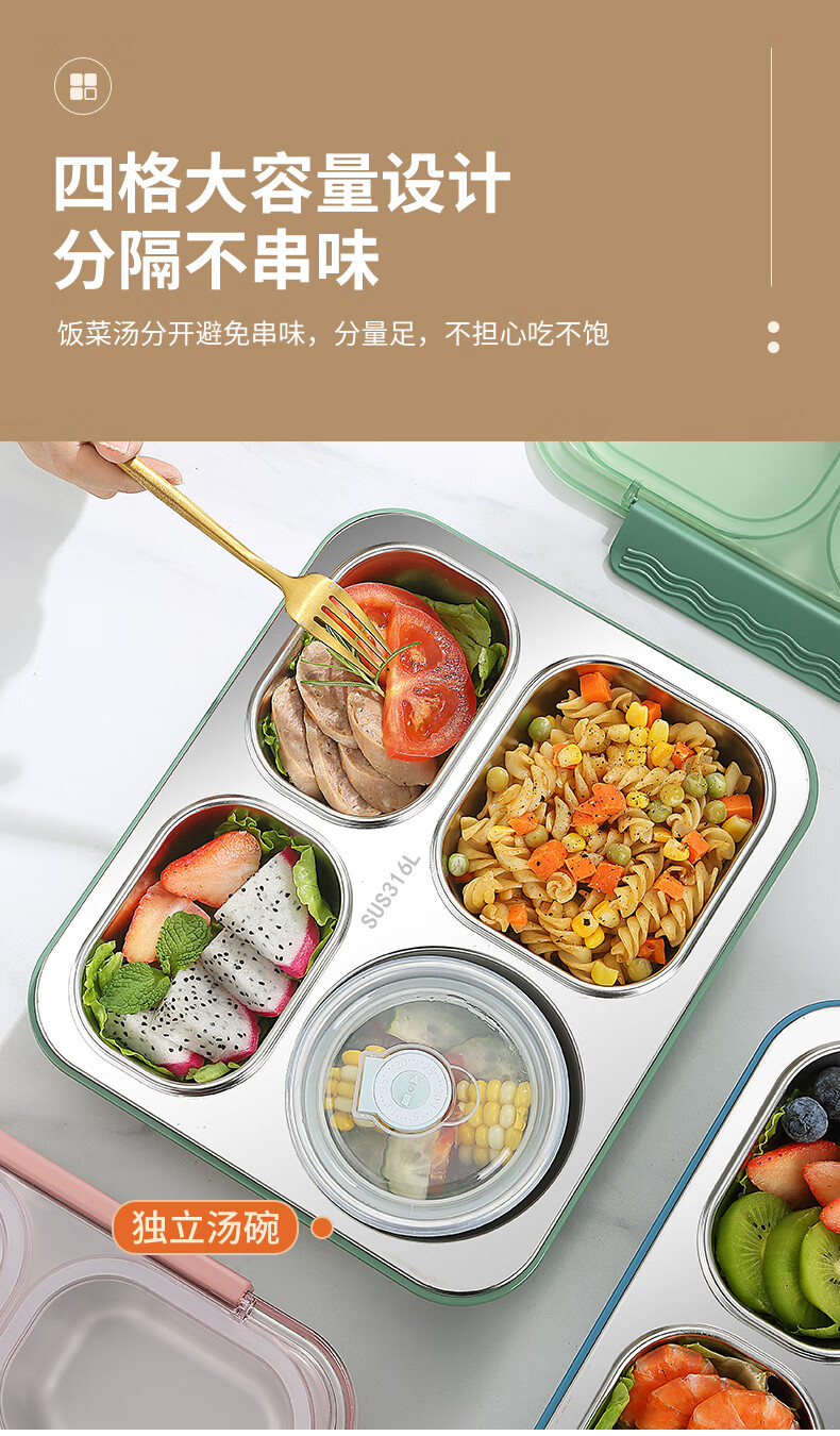 • 商品名称:莱柏顿316L不锈钢饭盒学生餐盒密封保温餐盒上班族分格便当盒定制logo 316L饭盒-绿/盒