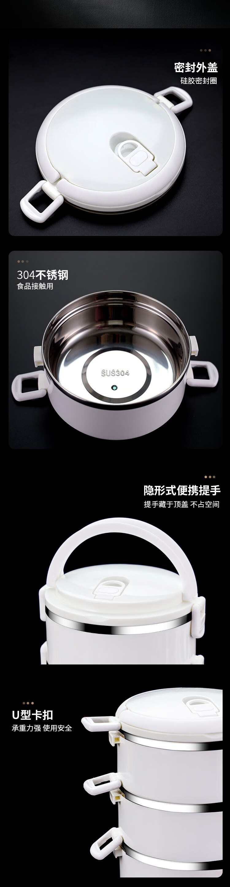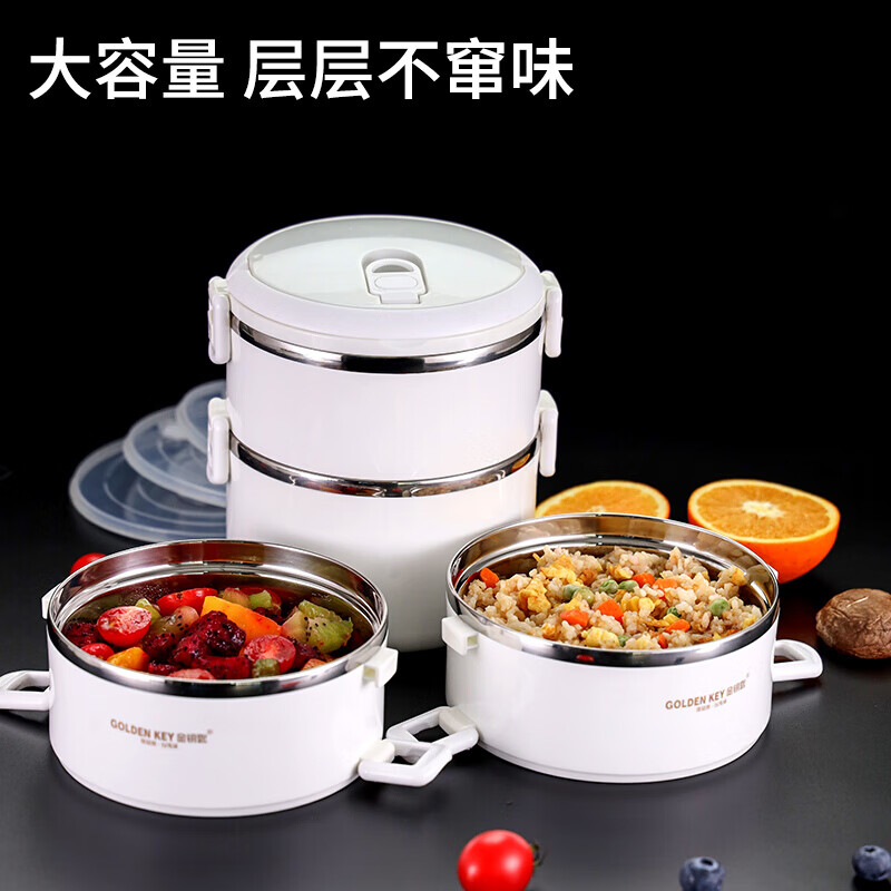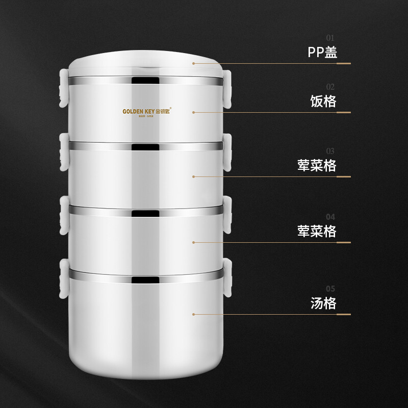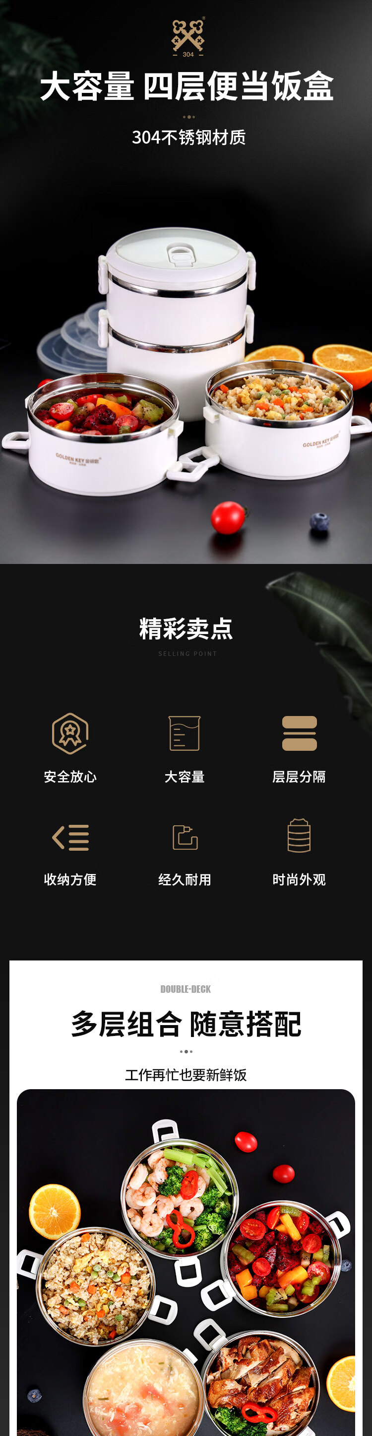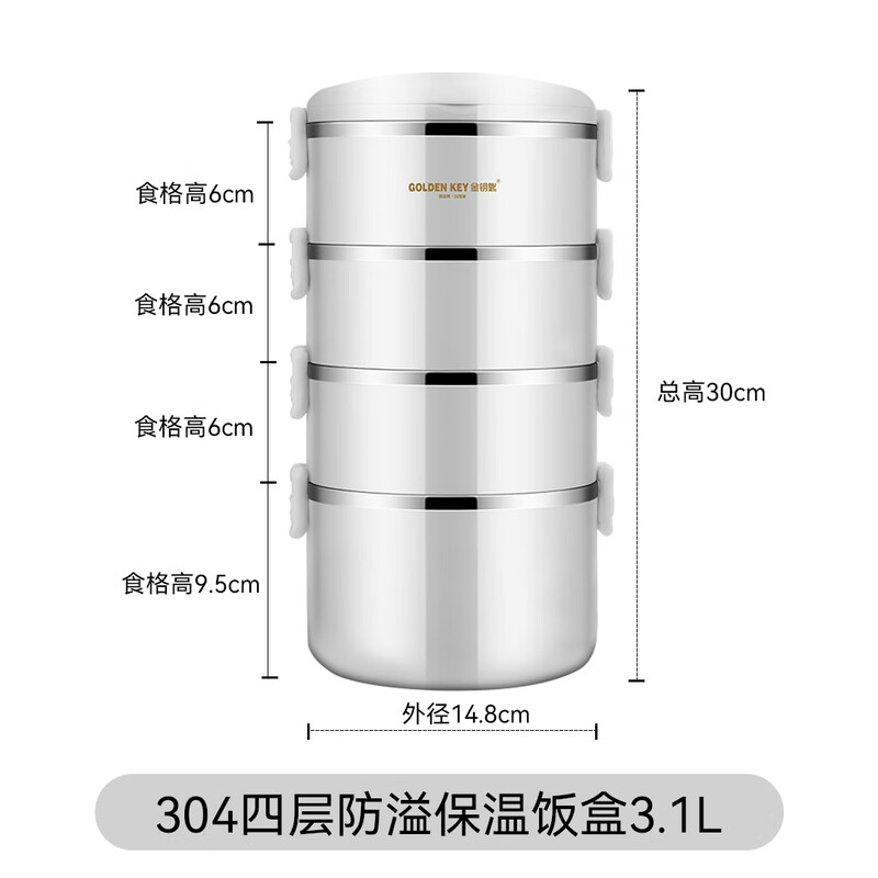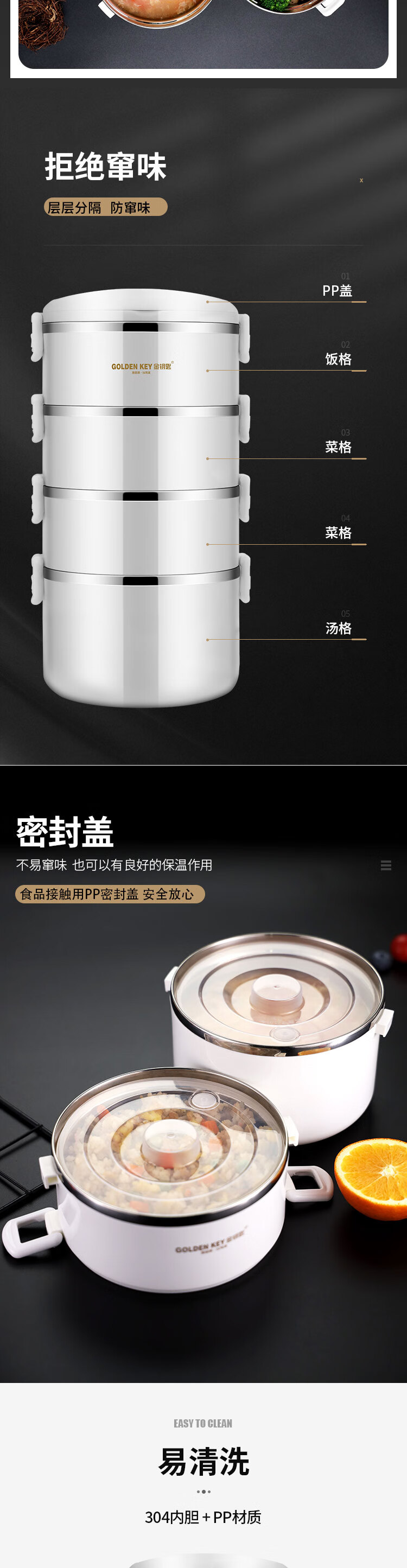 厨具  > 厨房储物  > 饭盒/提锅  >  金钥匙/GOLDEN KEY  >  金钥匙(GOLDEN KEY)304不锈钢四层防溢保温饭盒多层组合便当盒3.1L珍珠白GK-3100BD-W 304不锈钢/套