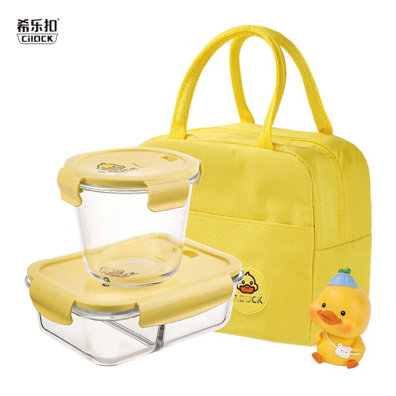 厨具  > 厨房储物  > 保鲜盒  >  希乐扣Cilock  >  希乐扣Cilock小黄鸭耐热玻璃饭盒保鲜盒便当盒餐盒密封碗便当包长1080+720+包 小黄鸭系列/套
