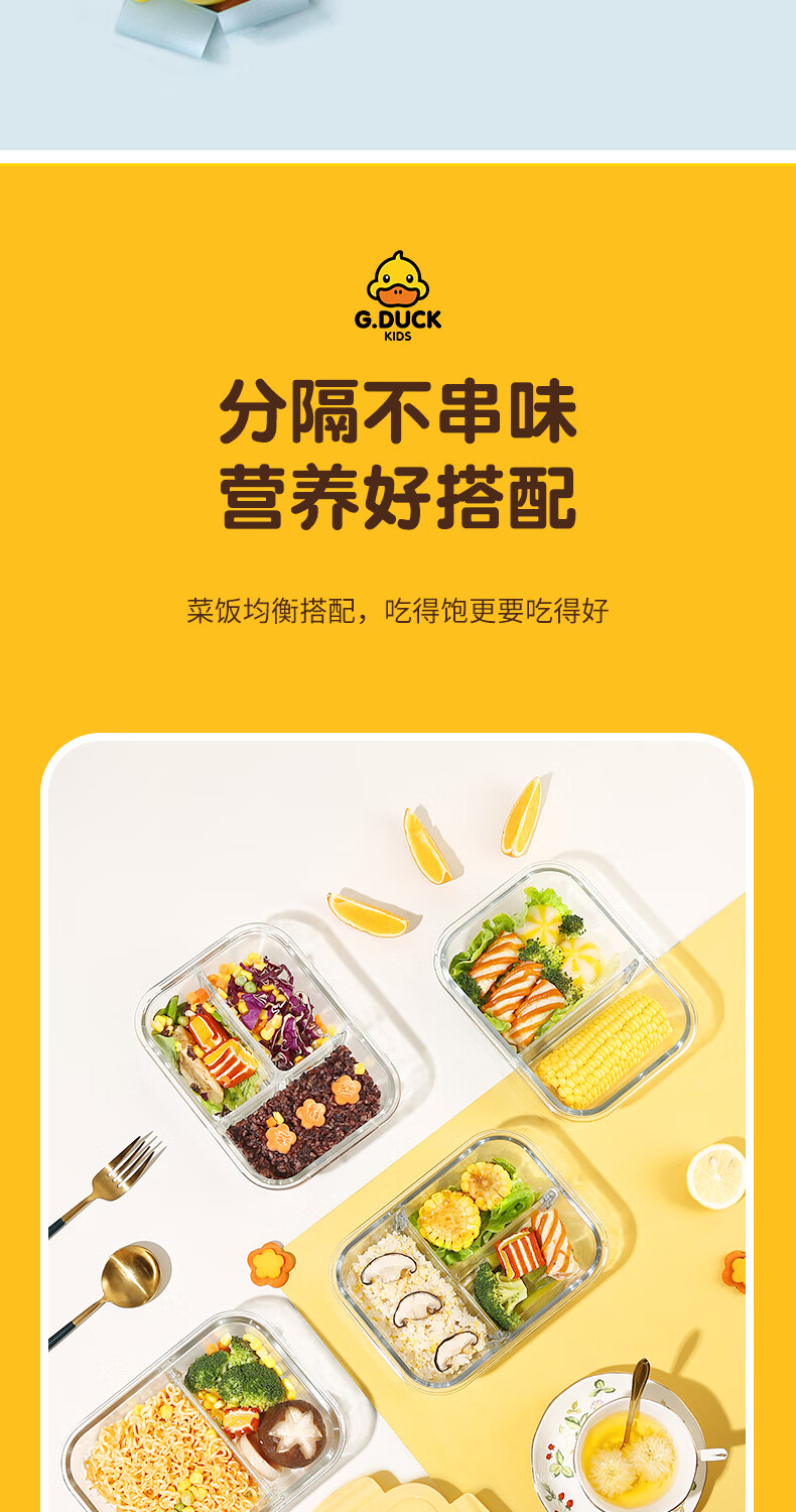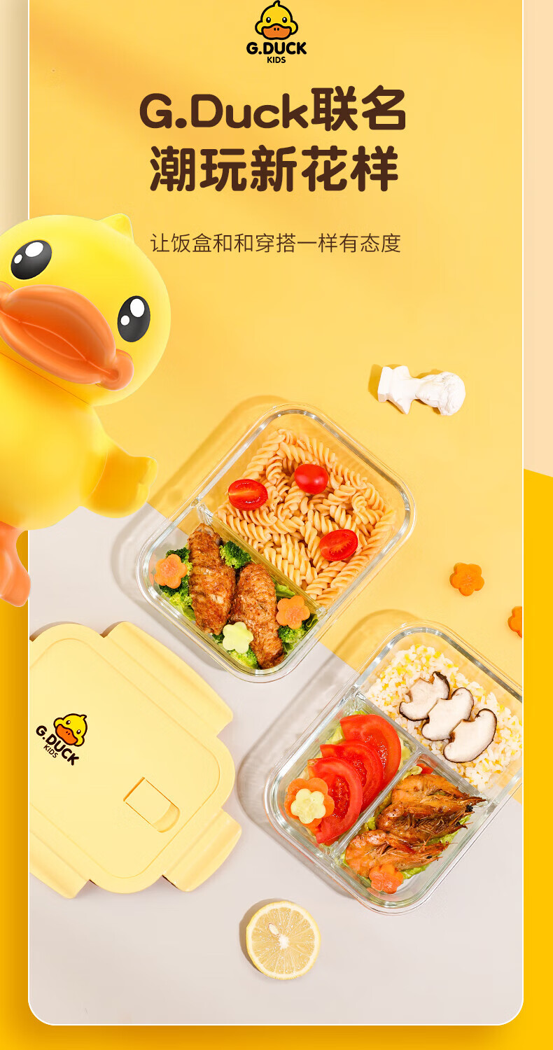 商品名称: 希乐扣Cilock小黄鸭耐热玻璃饭盒保鲜盒便当盒餐盒密封碗便当包长1080+720+包 小黄鸭系列/套