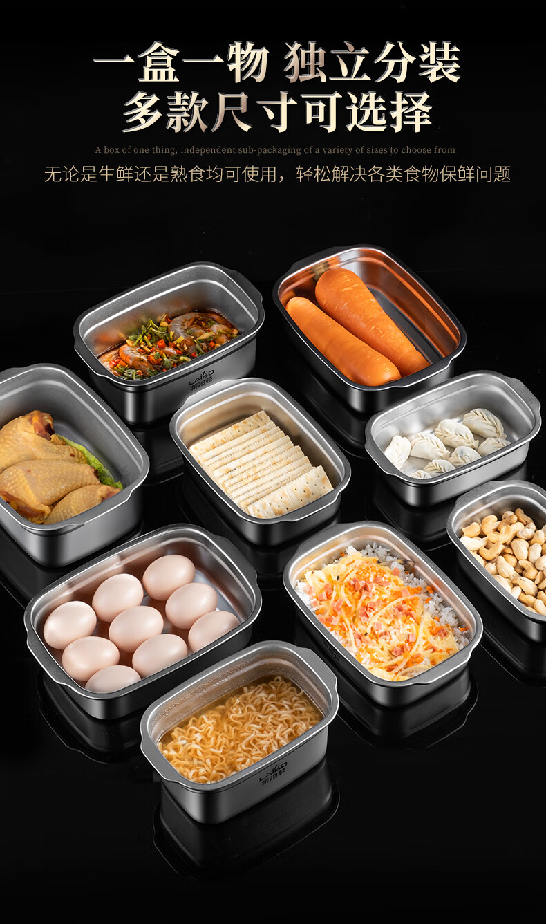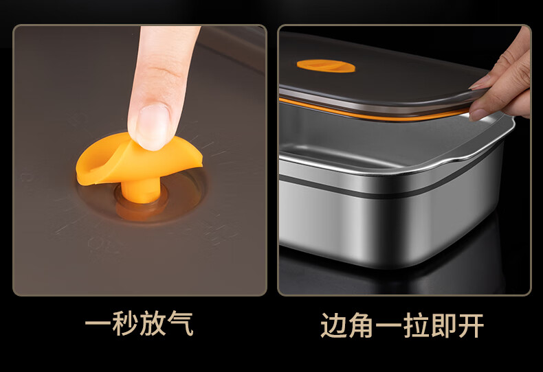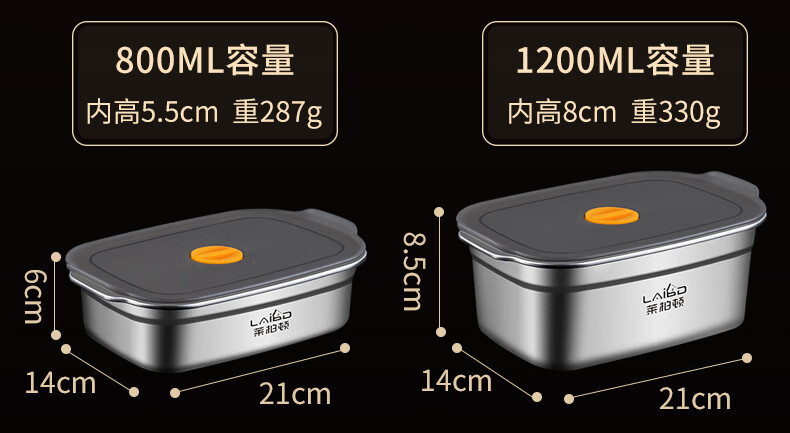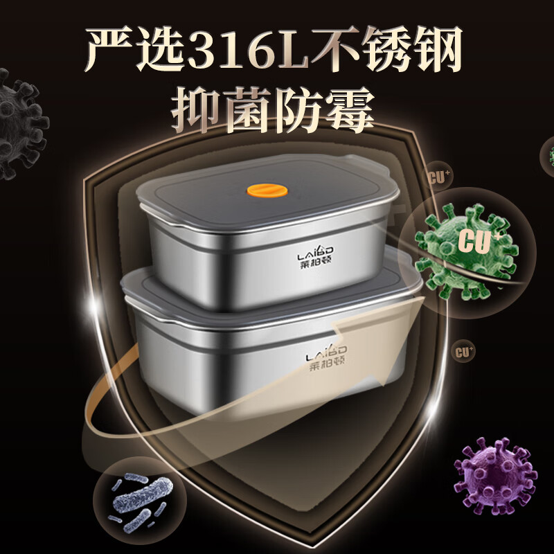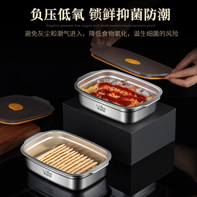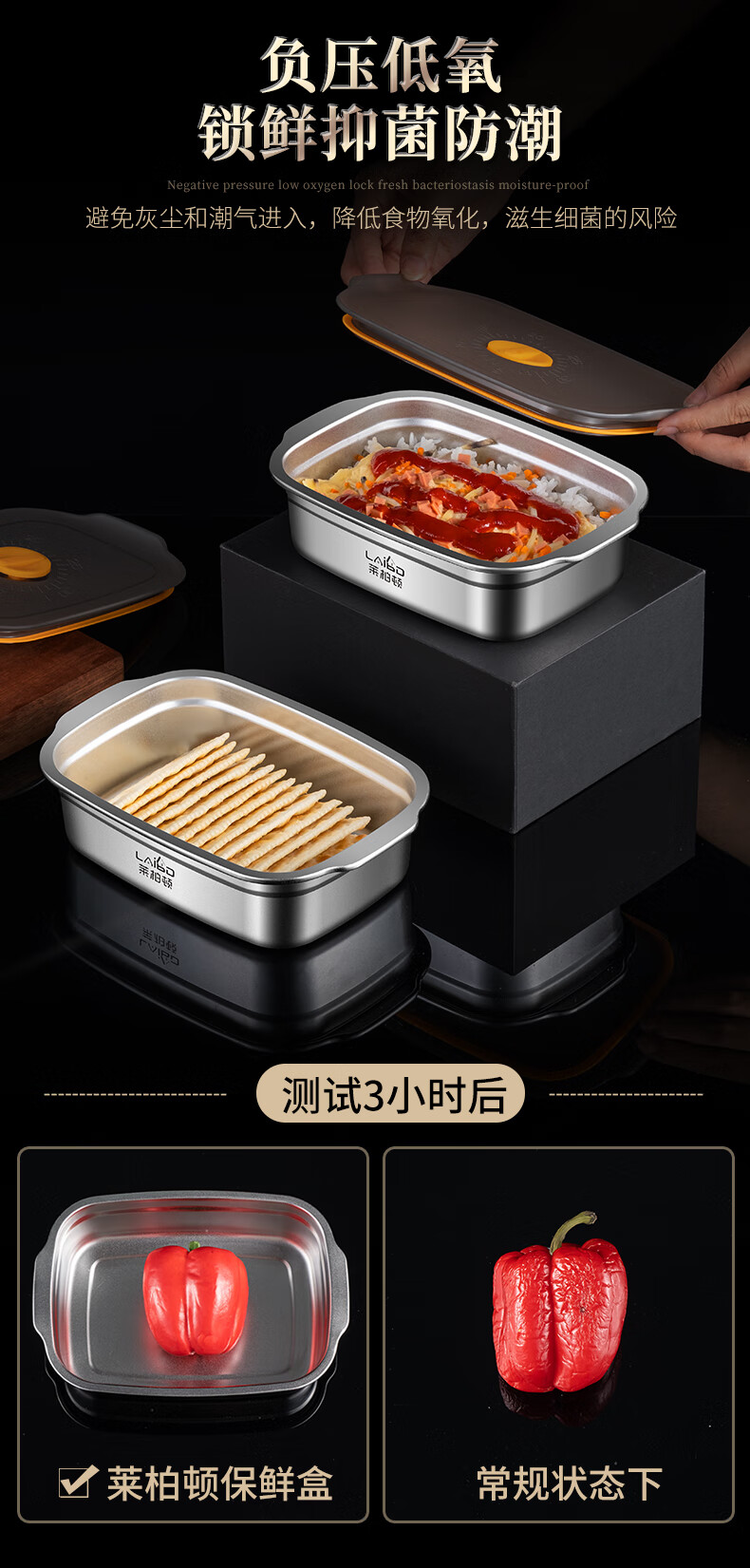厨具  > 厨房储物  > 保鲜盒  >  莱柏顿  >  莱柏顿德国316L不锈钢保鲜盒冰箱收纳盒微真空锁鲜密封野餐水果盒子饭盒 316L方形保鲜盒【800ML*1】矮款/套