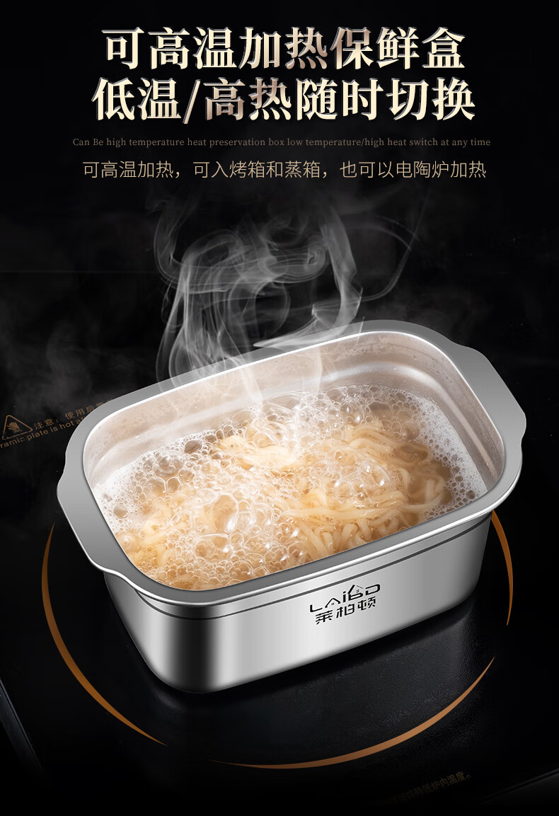商品名称: 莱柏顿德国316L不锈钢保鲜盒冰箱收纳盒微真空锁鲜密封野餐水果盒子饭盒 316L方形保鲜盒【800ML*1】矮款/套
