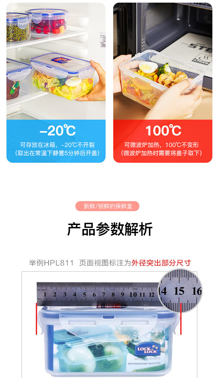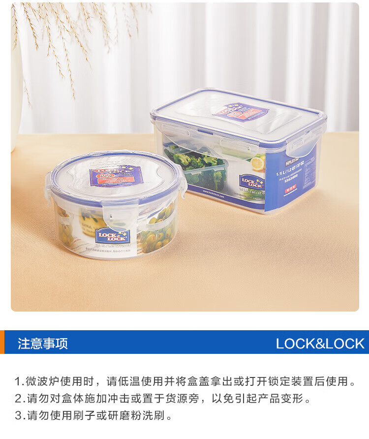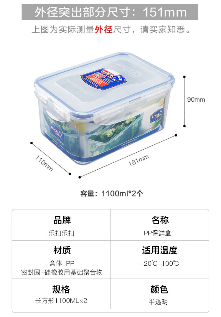 • 商品名称:乐扣乐扣(LOCK&LOCK) 大容量塑料保鲜盒套装密封便当盒餐盒饭盒冰箱收纳盒子1.1L*2 lklk034/套