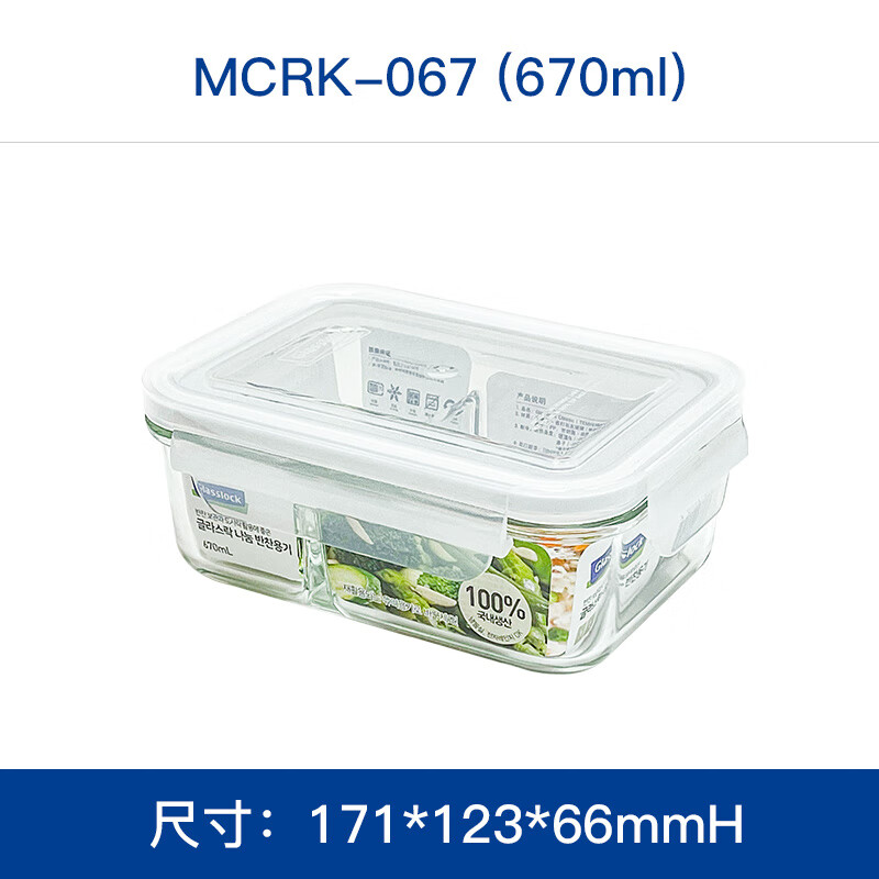 • 商品名称:Glasslock进口钢化玻璃保鲜盒上班带饭微波炉加热分隔食品级饭盒670ml MCRB-067/套