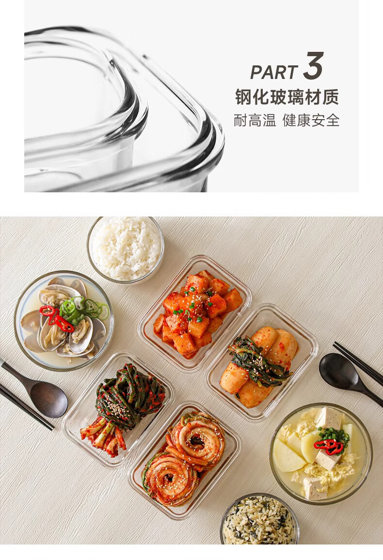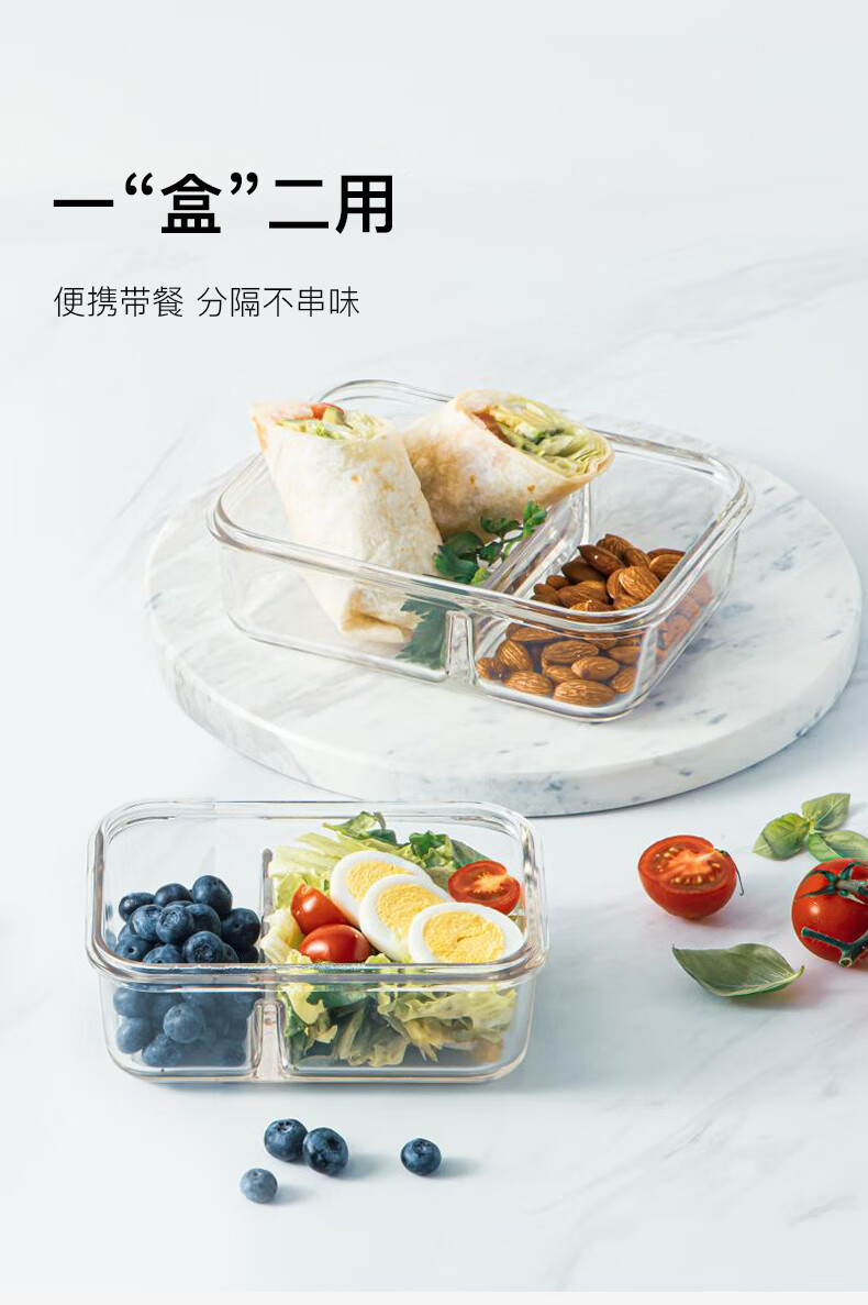 包装清单: Glasslock韩国进口钢化玻璃分隔保鲜盒670ml*1 MCRK-067