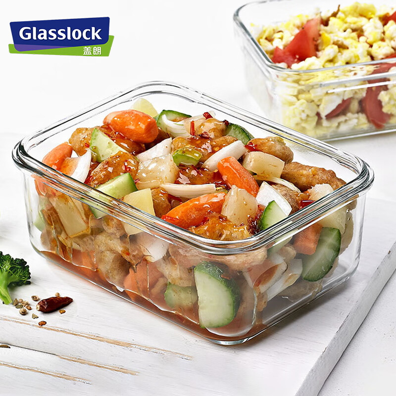 厨具  > 厨房储物  > 保鲜盒  >  GLASSLOCK  >  Glasslock进口钢化玻璃保鲜盒上班族带饭微波炉加热便当盒大容量饭盒1100ml 保鲜盒/套