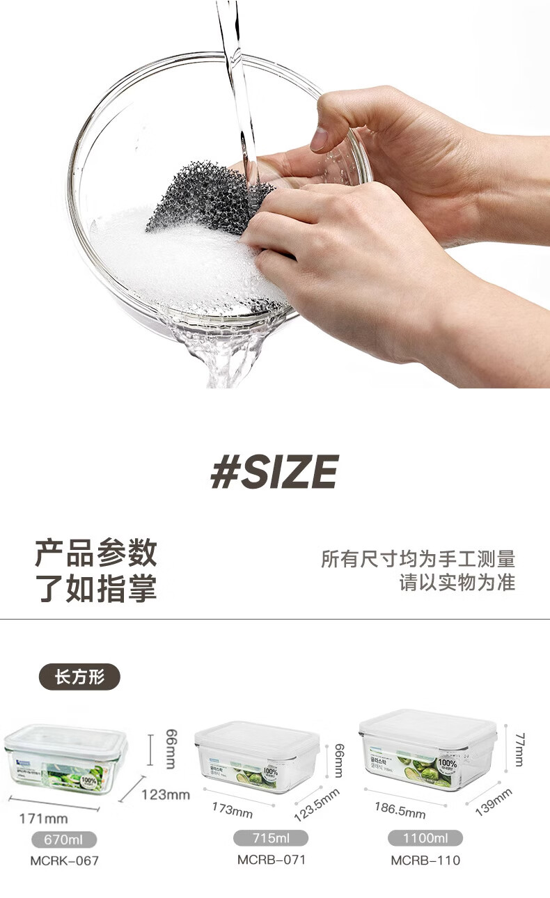 包装清单: Glasslock进口钢化玻璃保鲜盒1100ml*1 MCRB110