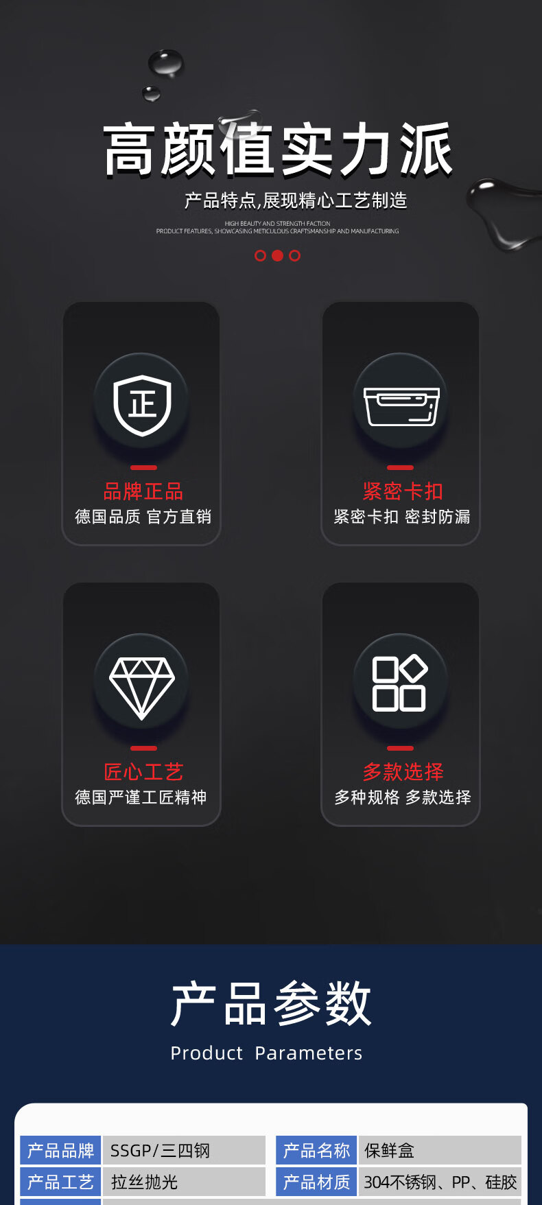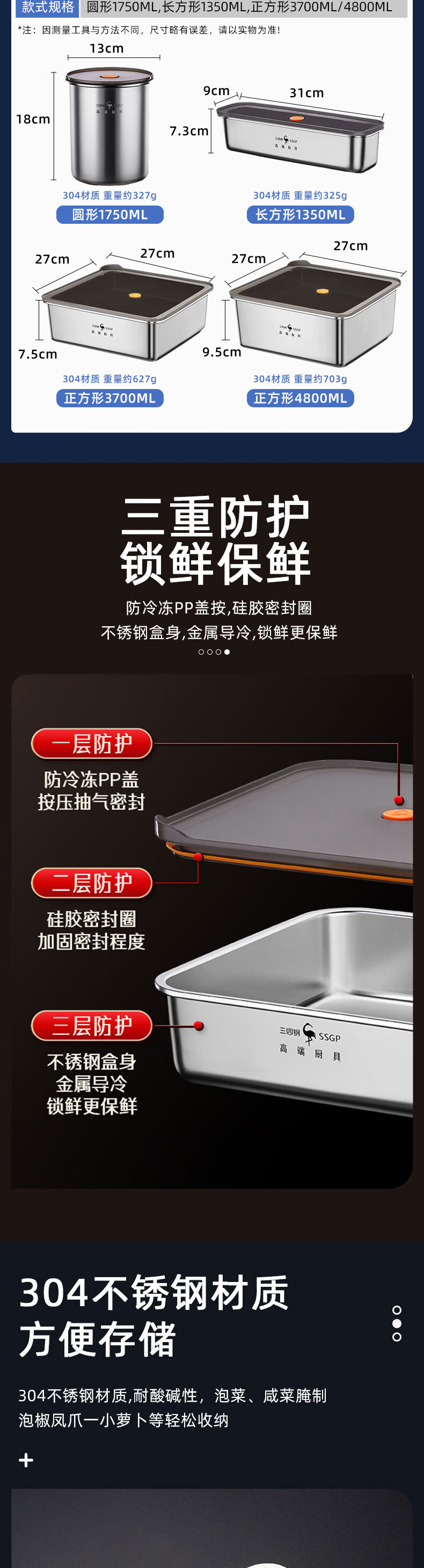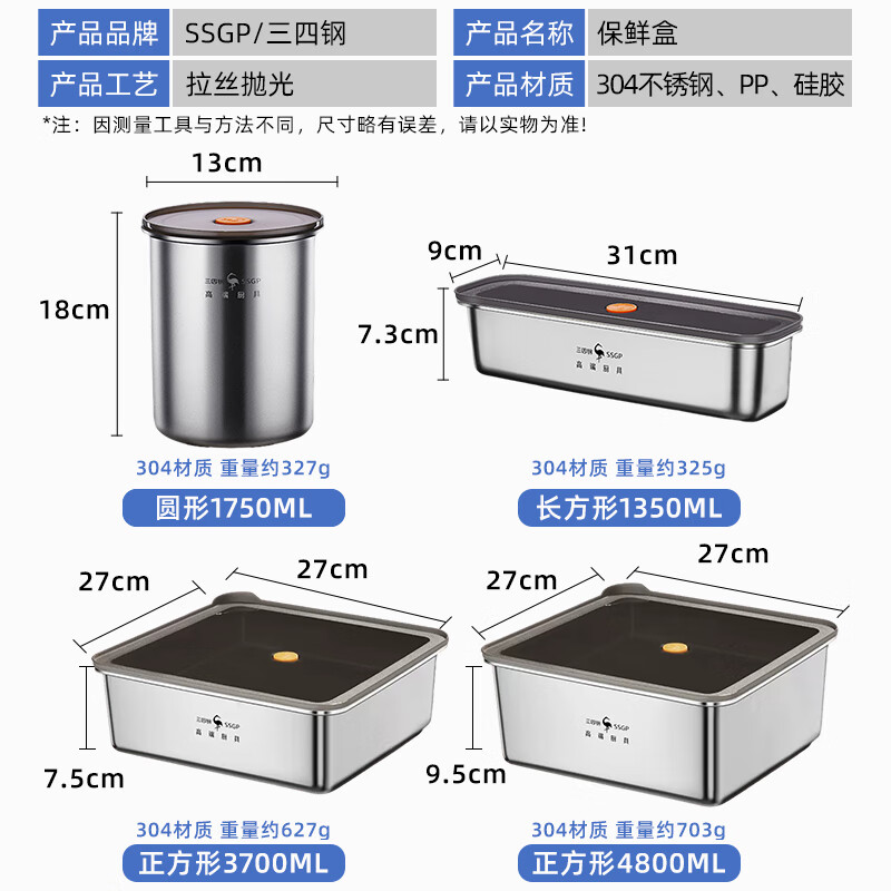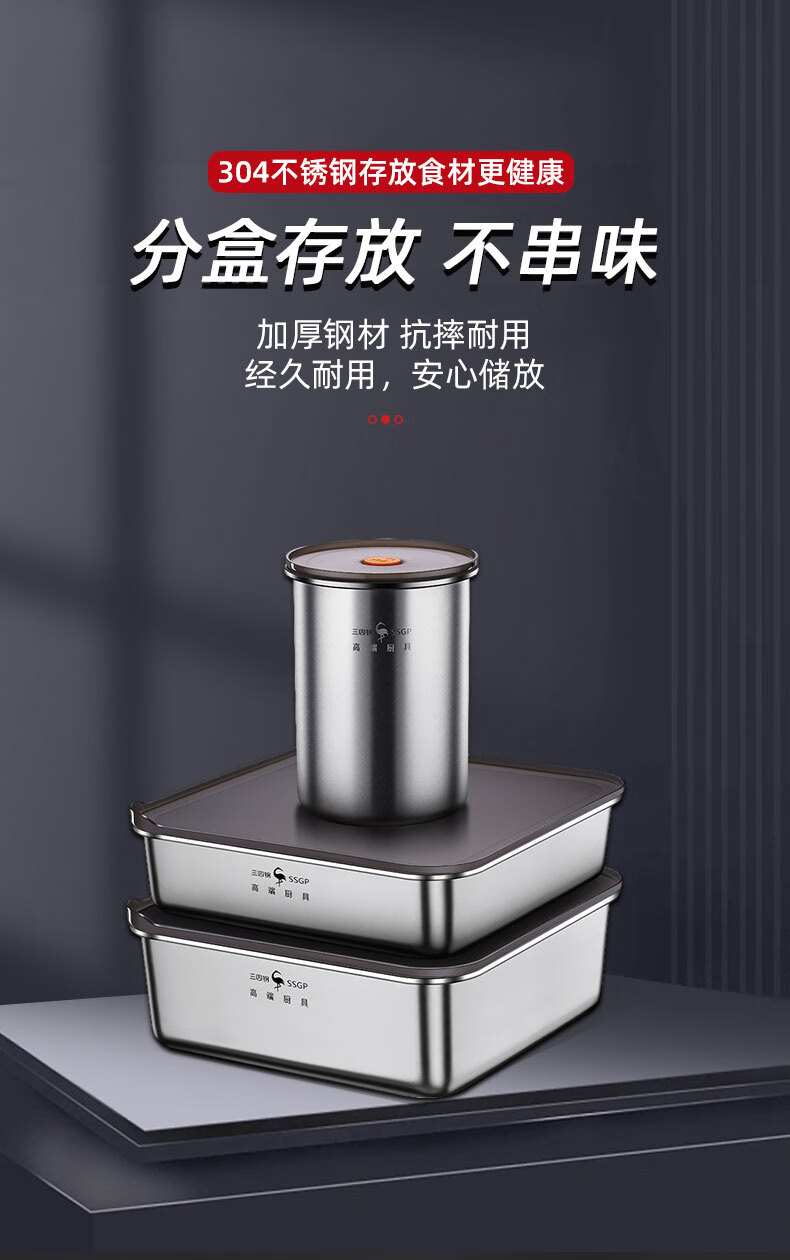 • 商品名称:三四钢 GZK771 德国大容量304不锈钢保鲜盒饭盒密封储存蔬菜肉 4800ml GZK771/个