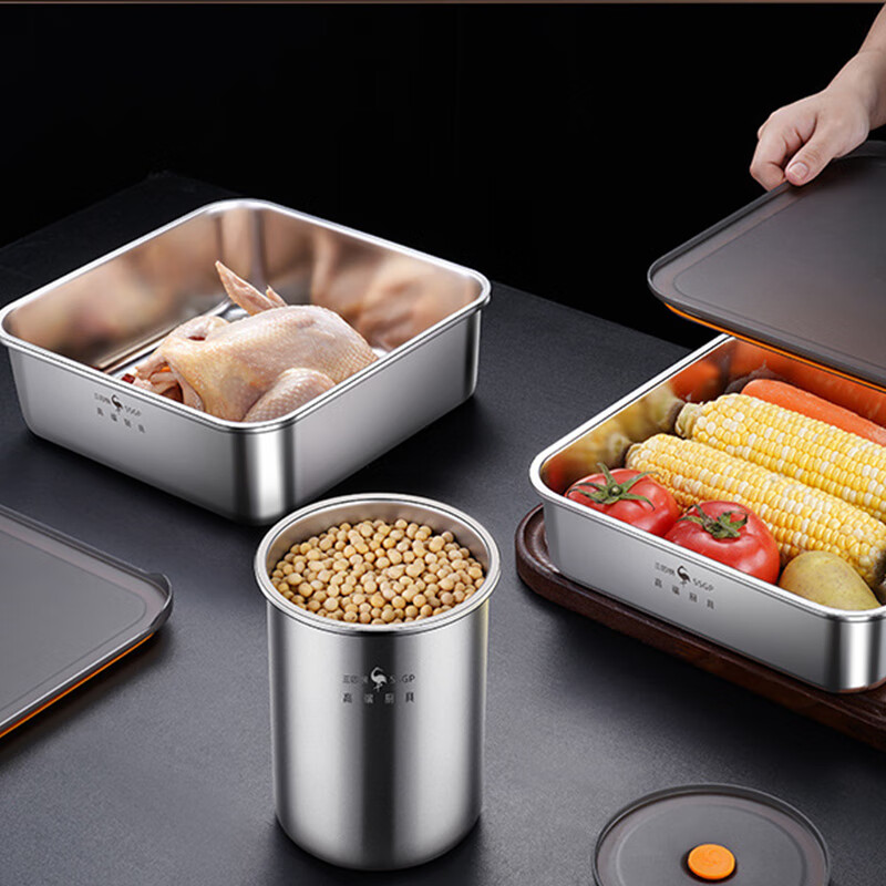 厨具  > 厨房储物  > 保鲜盒  >  三四钢  >  三四钢 GZK771 德国大容量304不锈钢保鲜盒饭盒密封储存蔬菜肉 4800ml GZK771/个