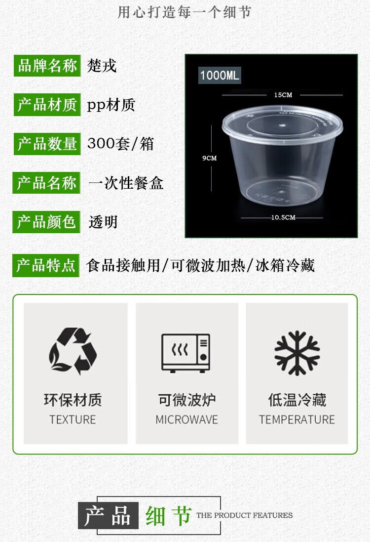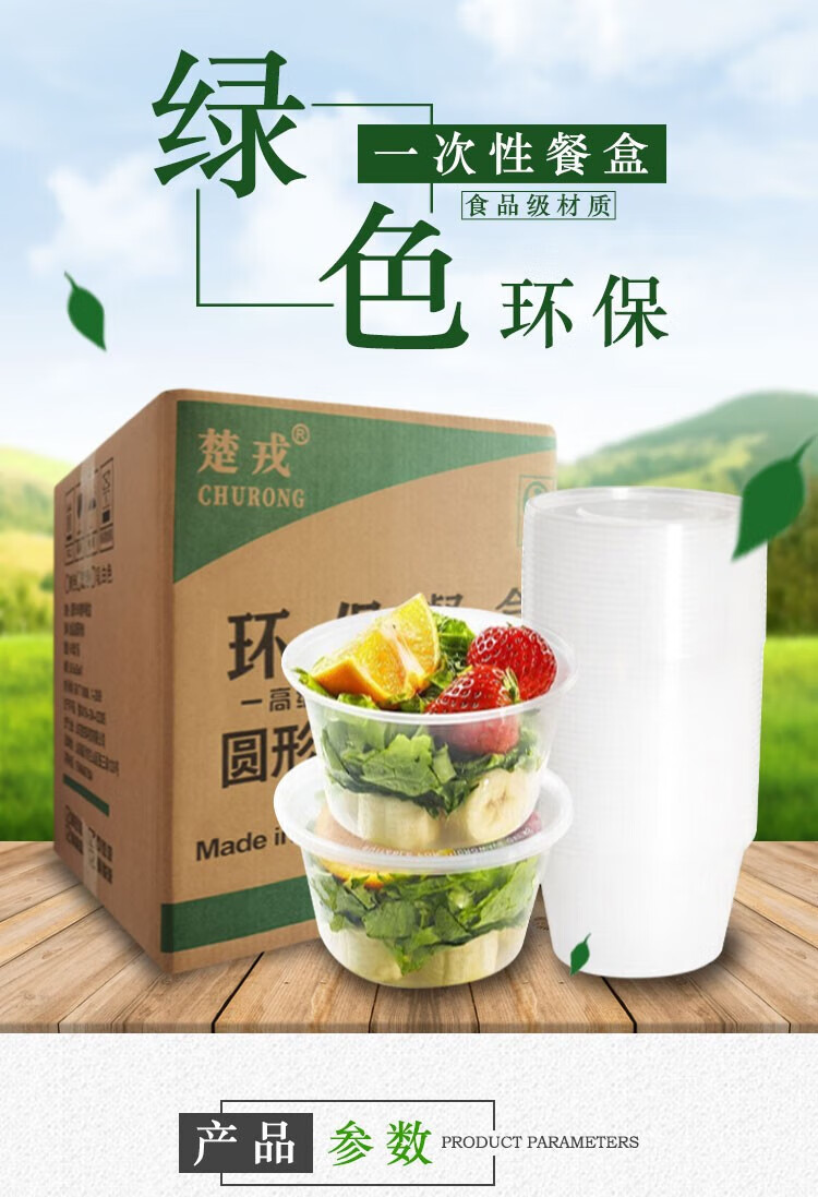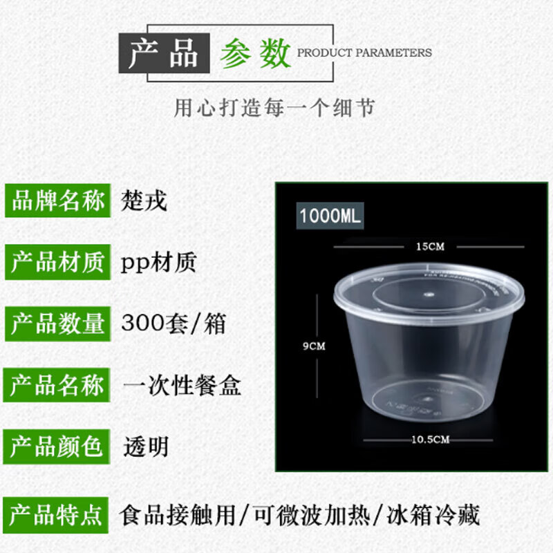 • 商品名称:楚戎加厚一次性快餐盒 1000ml圆形汤碗PP塑料餐盒透明带盖300套/箱 1000ml圆碗300套/箱/箱