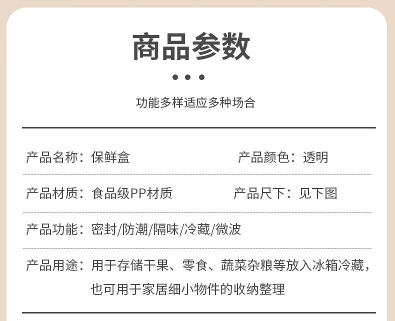 商品名称: 优必利 保鲜盒储物盒多功能密封收纳盒塑料盒带盖储存盒中号 8个装 6035 6035/个
