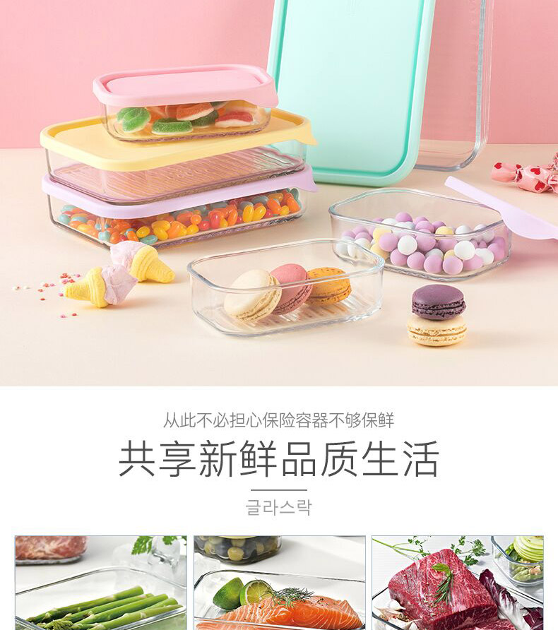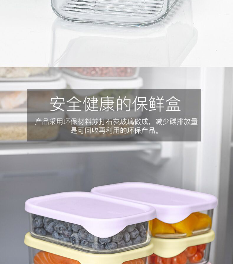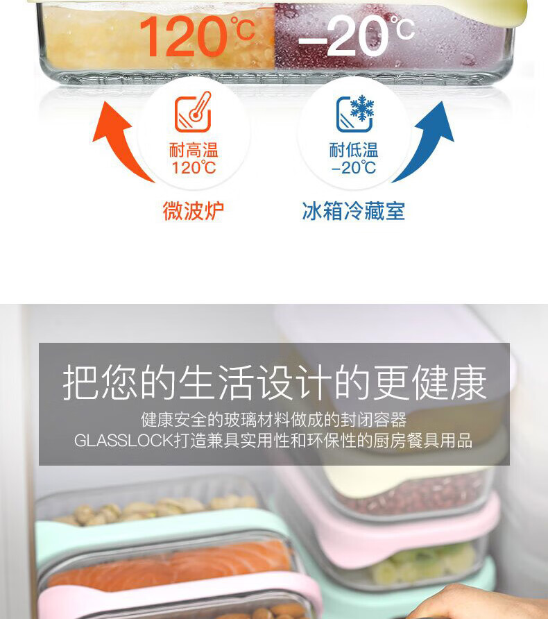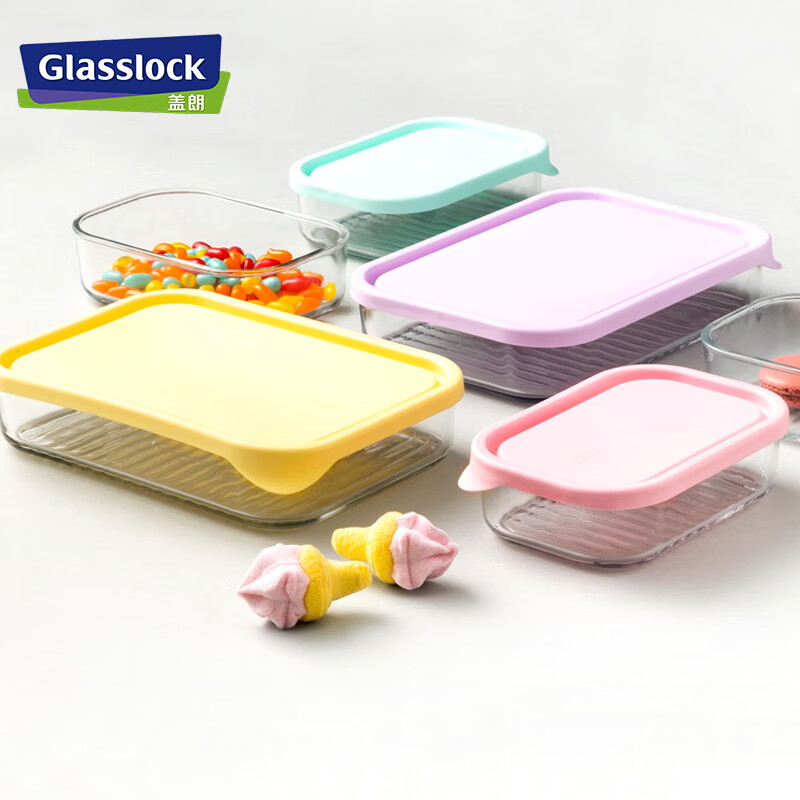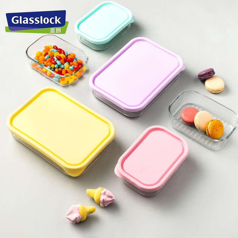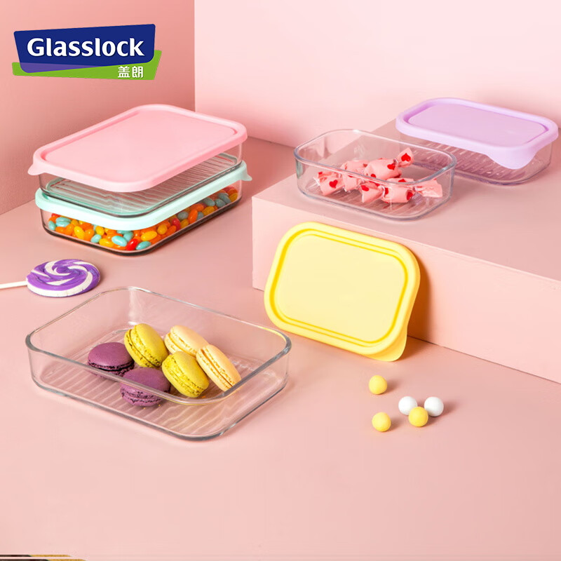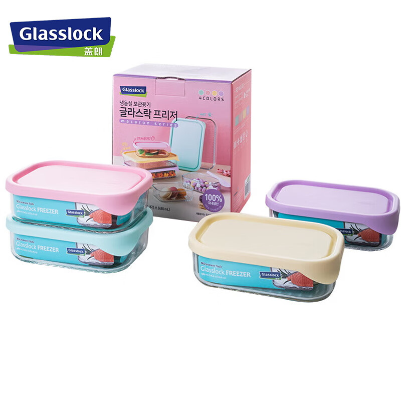 厨具  > 厨房储物  > 保鲜盒  >  GLASSLOCK  >  Glasslock进口保鲜盒冰箱冷冻盒食物收纳盒带饭可微波炉饭盒480ml*4件套 GL2096/套