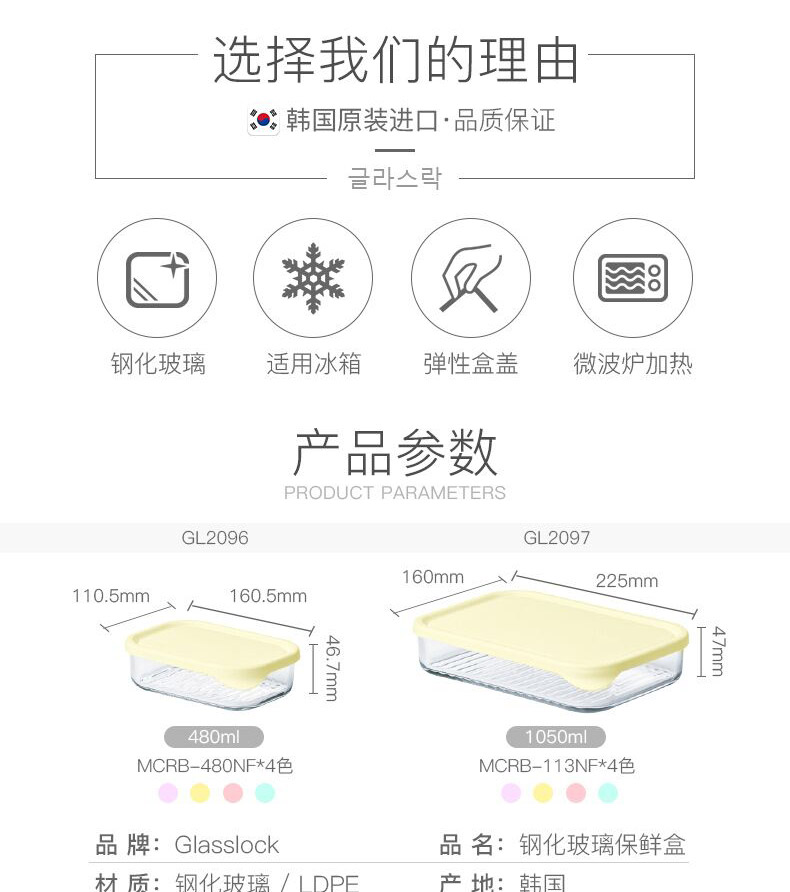 包装清单: Glasslock玻璃保鲜盒 480ml*4件套 GL2096 【MCRB-048NF*4】