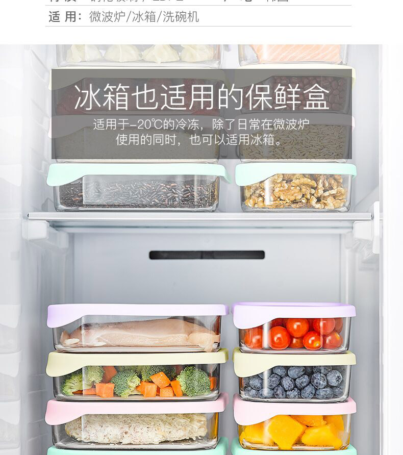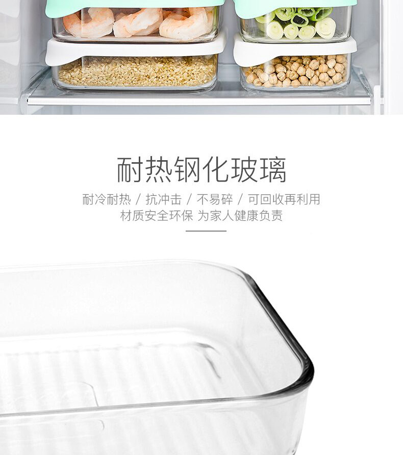 • 商品名称:Glasslock进口保鲜盒冰箱冷冻盒食物收纳盒带饭可微波炉饭盒480ml*4件套 GL2096/套