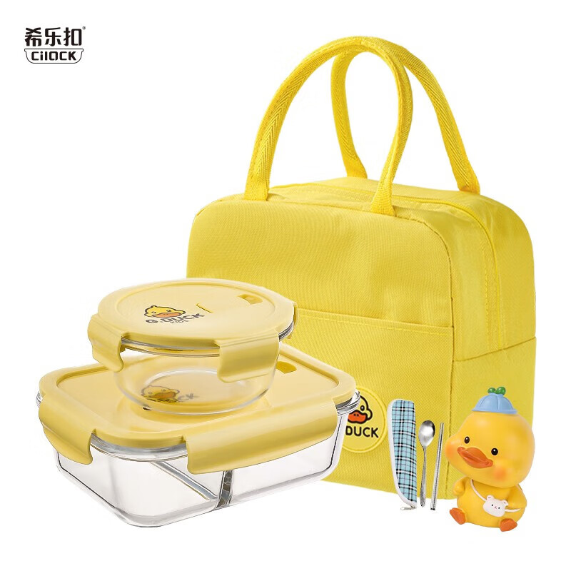 厨具  > 厨房储物  > 保鲜盒  >  希乐扣/cilock  >  希乐扣小黄鸭耐热玻璃饭盒上班族带饭便当盒餐盒密封便当盒大容量保鲜盒 小黄鸭系列/套