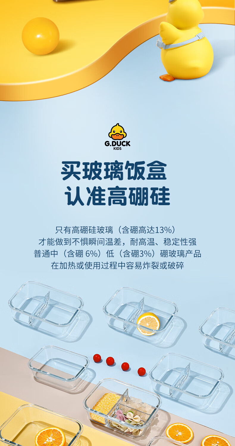 商品名称: 希乐扣小黄鸭耐热玻璃饭盒上班族带饭便当盒餐盒密封便当盒大容量保鲜盒 小黄鸭系列/套