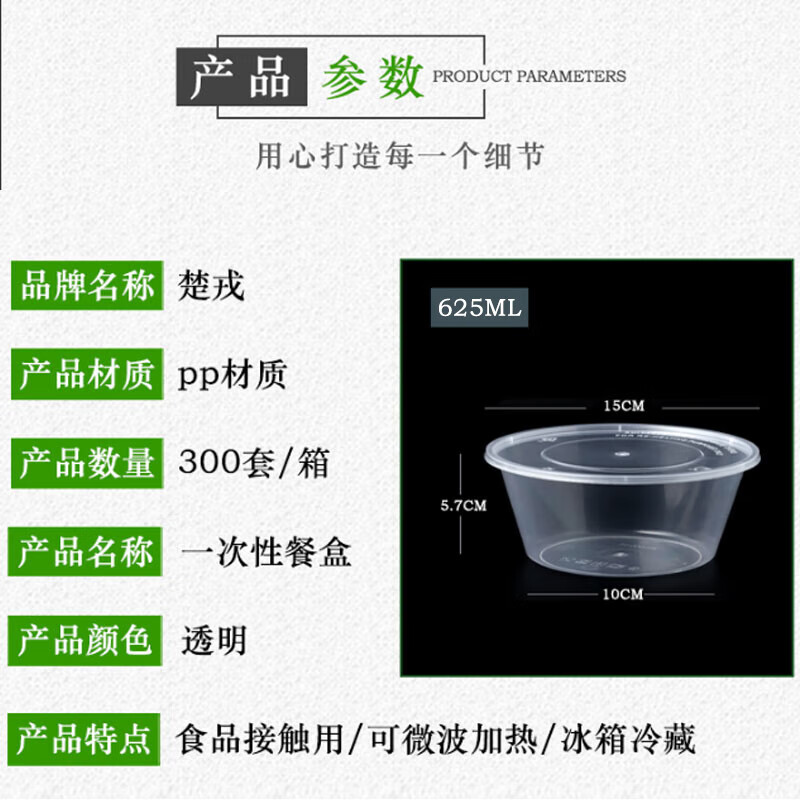 • 商品名称:楚戎加厚一次性快餐盒625ml圆形汤碗PP塑料餐盒透明带盖300套/箱 625ml黑色圆碗300套/箱/箱