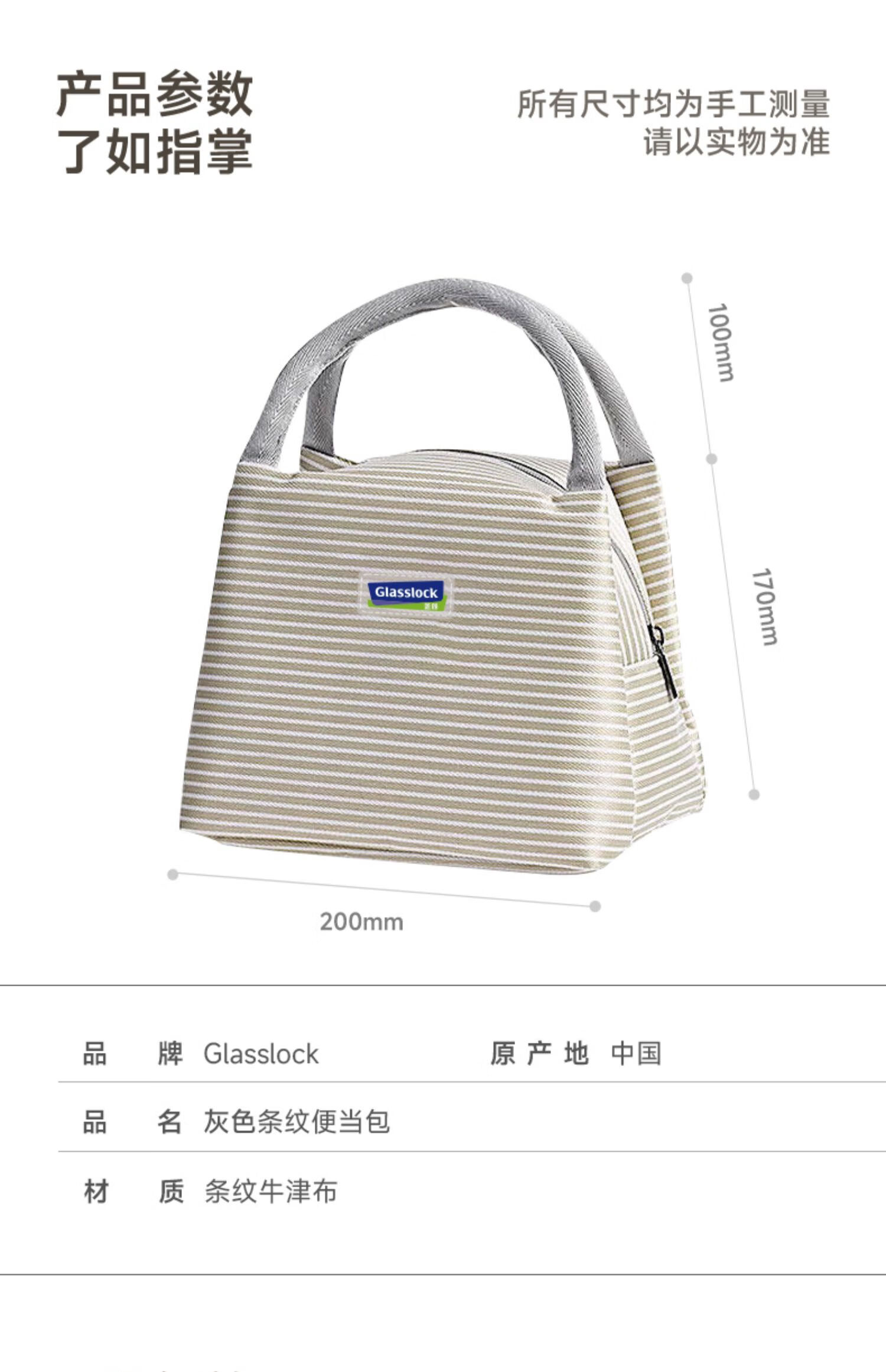 • 商品名称:Glasslock便当包保鲜盒保温手提袋饭盒袋铝箔布艺包韩版布条纹包男女手拎包 三光云彩Glasslock饭盒便当手提带饭保温包GL29/件