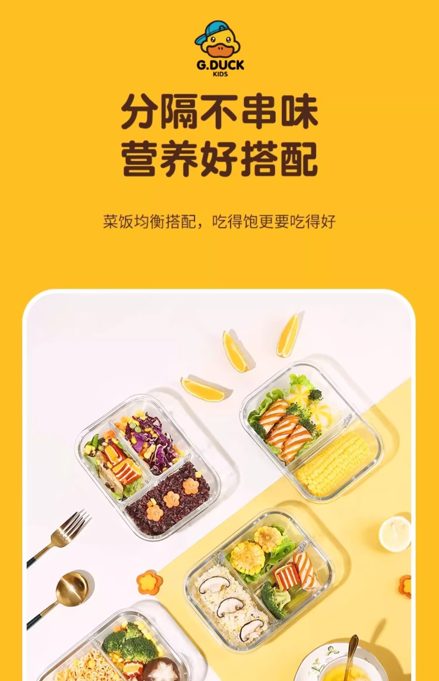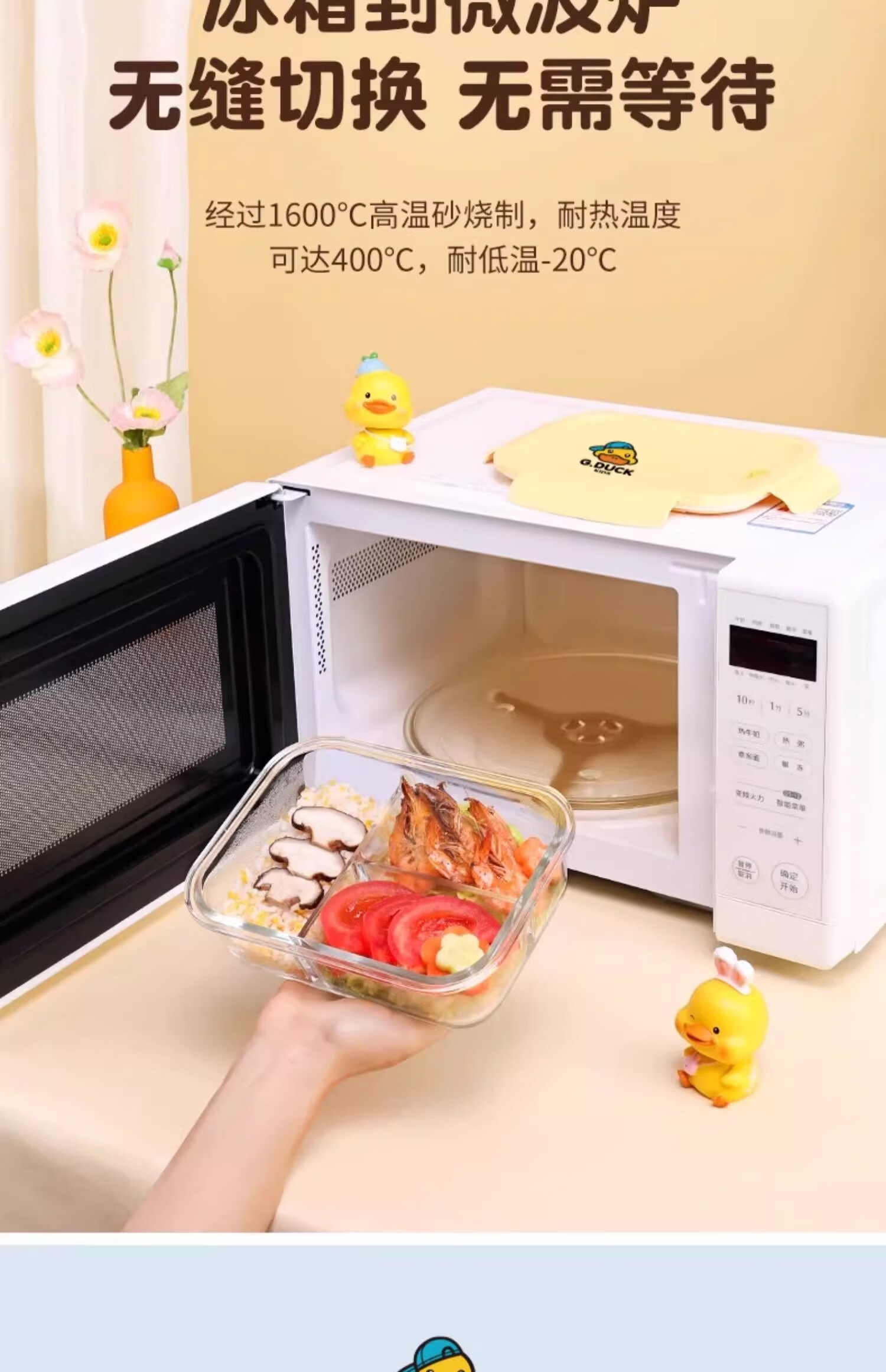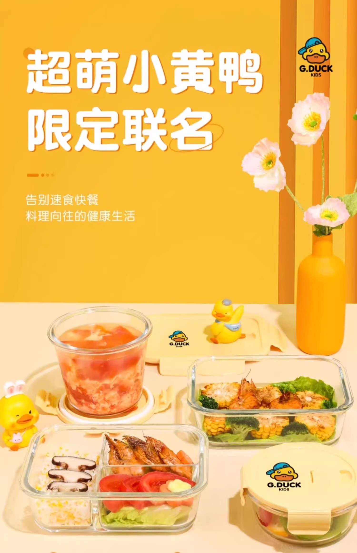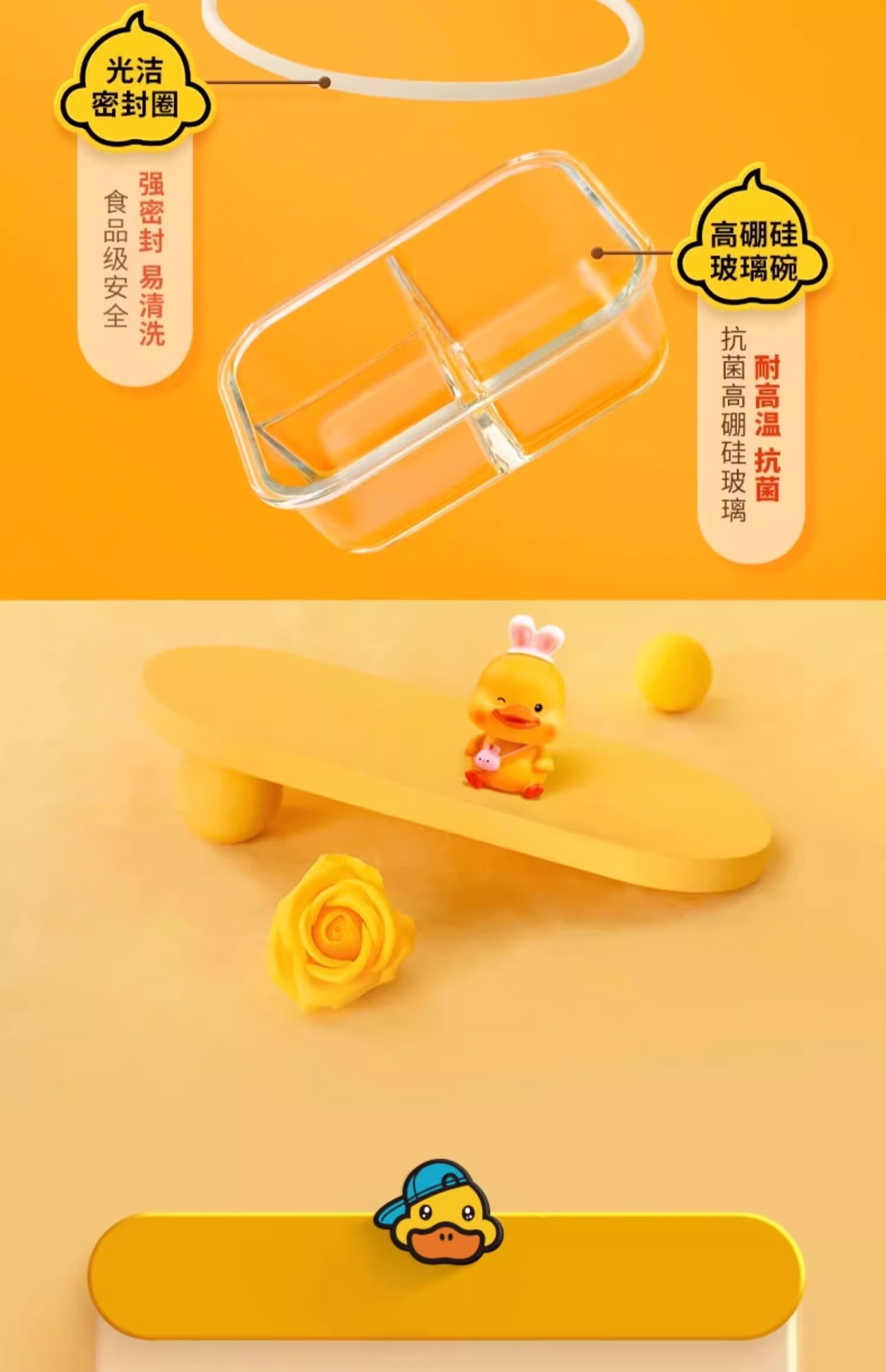 • 商品名称:希乐扣Cilock小黄鸭玻璃饭盒上班族带饭微波炉加热餐盒水果保鲜盒便当盒 4件套 小黄鸭系列/个