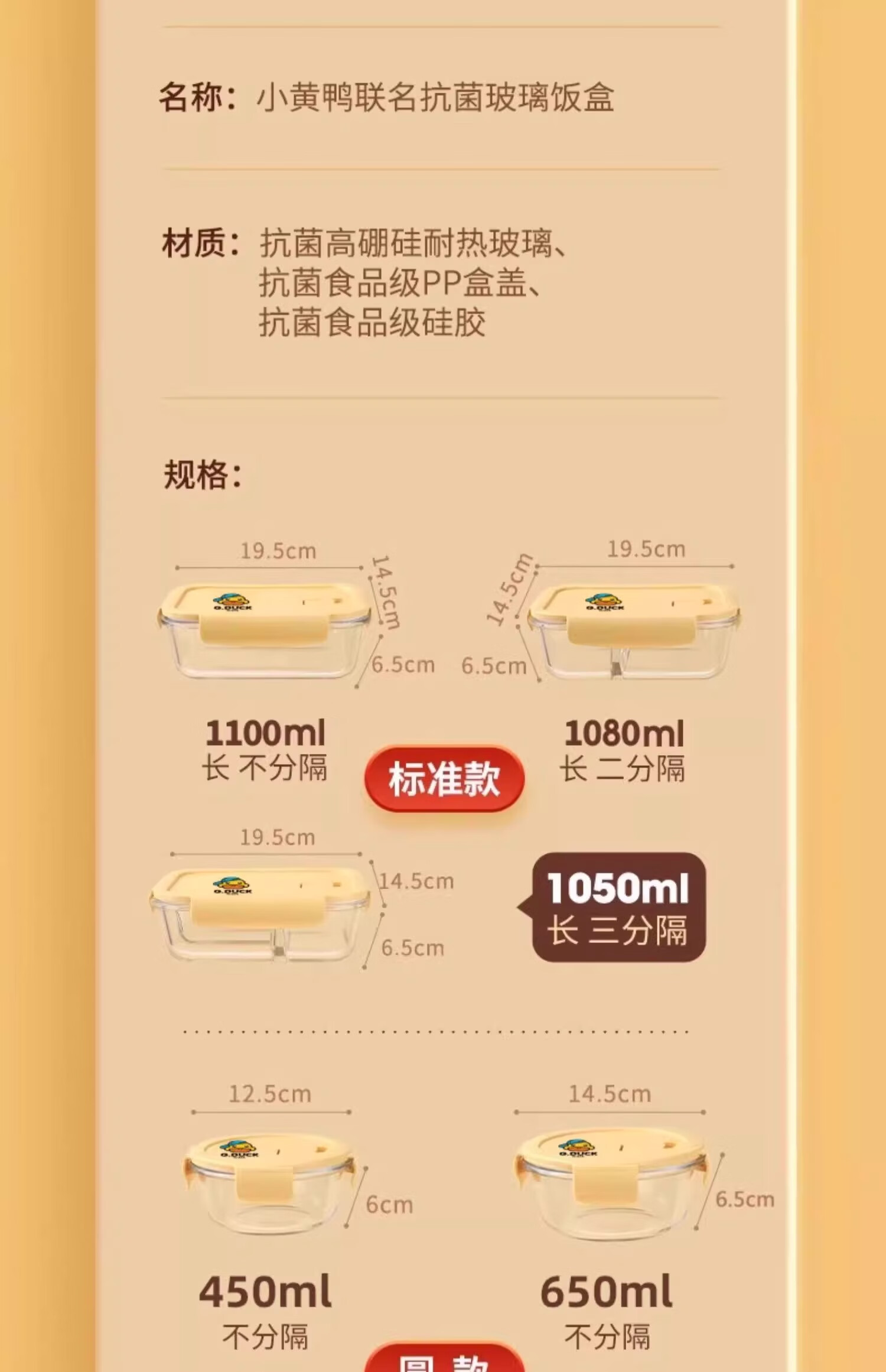商品名称: 希乐扣Cilock小黄鸭玻璃饭盒上班族带饭微波炉加热餐盒水果保鲜盒便当盒 4件套 小黄鸭系列/个