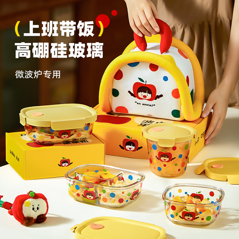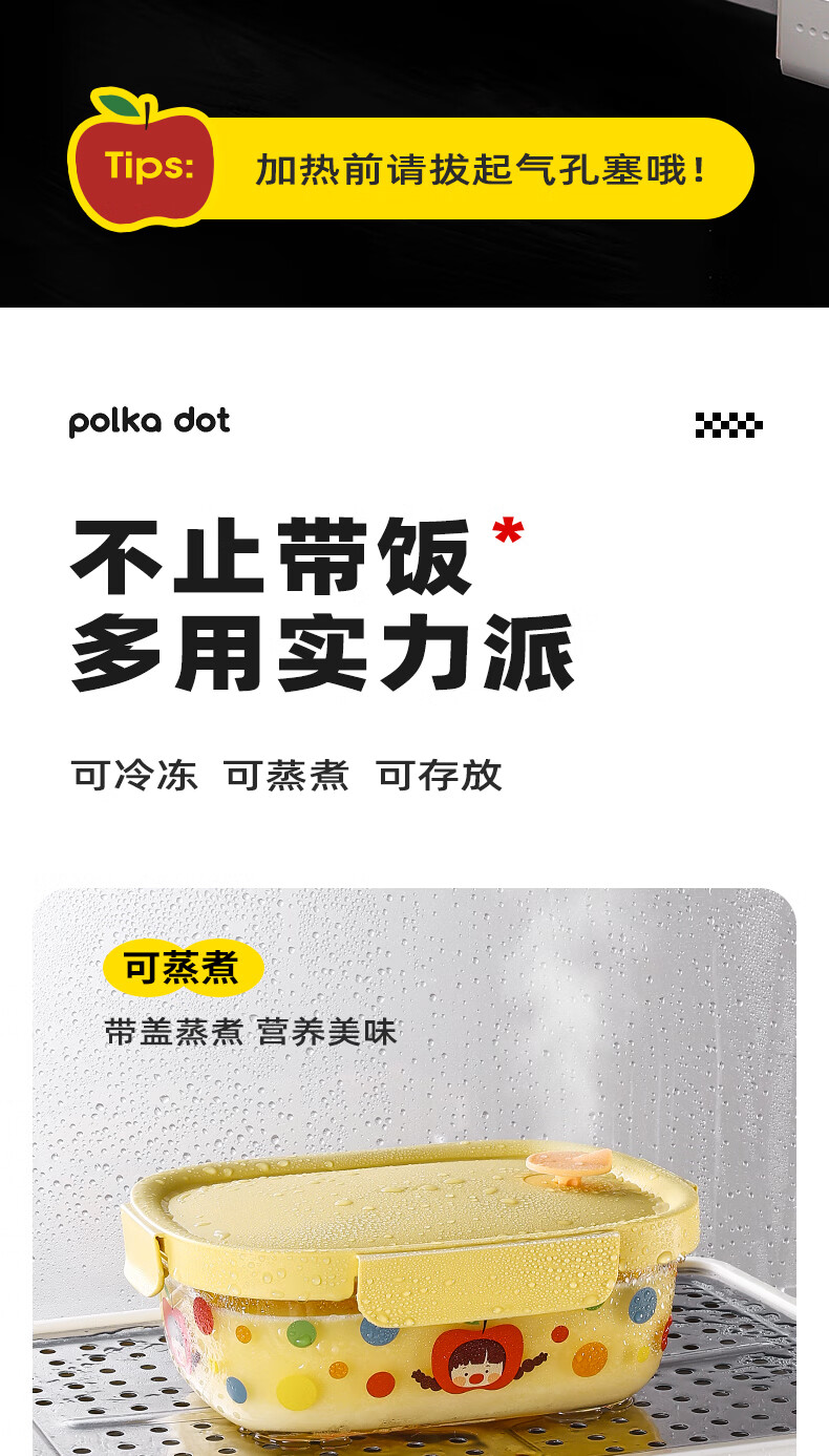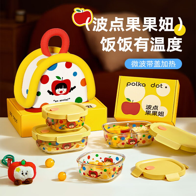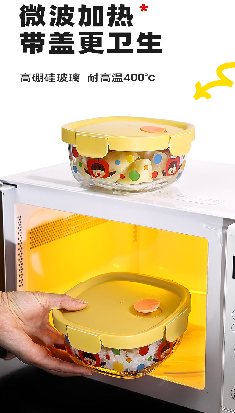 • 商品名称:希乐扣Cilock玻璃饭盒上班族带饭餐盒可微波炉加热减脂碗水果便当盒密封保鲜盒 原创波点果果妞保鲜盒/个