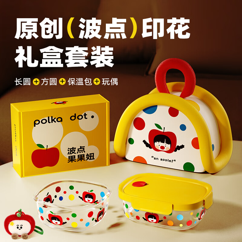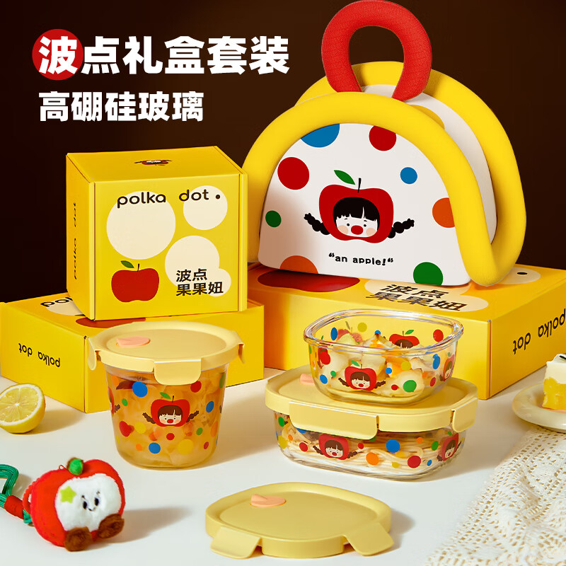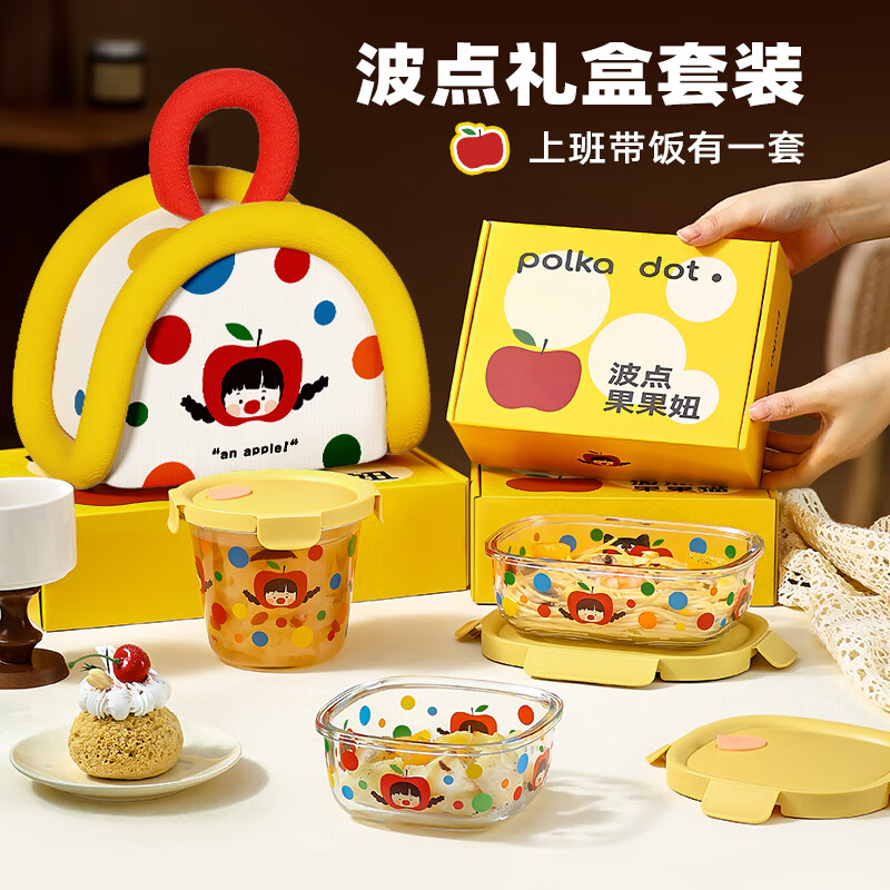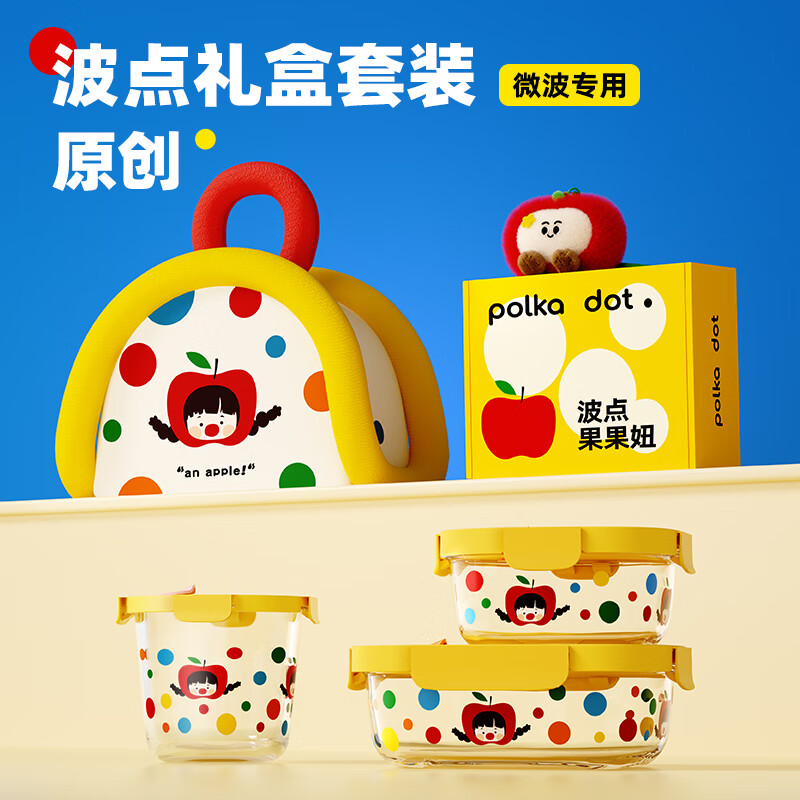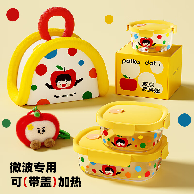 厨具  > 厨房储物  > 保鲜盒  >  希乐扣Cilock  >  希乐扣Cilock玻璃饭盒上班族带饭餐盒可微波炉加热减脂碗水果便当盒密封保鲜盒 原创波点果果妞保鲜盒/个