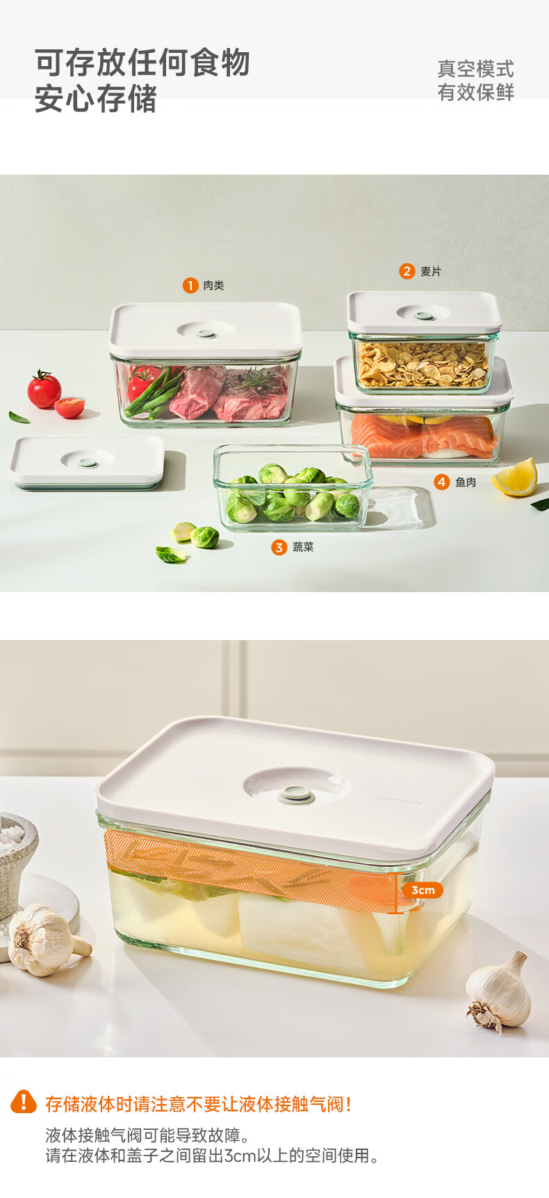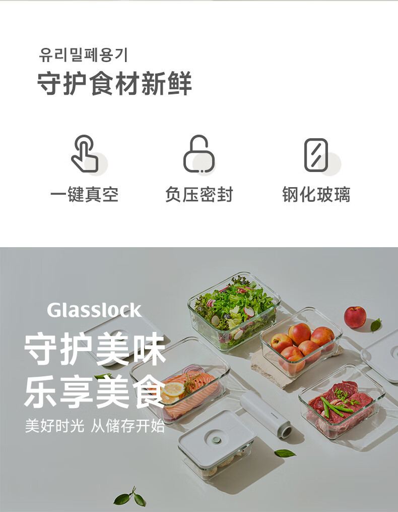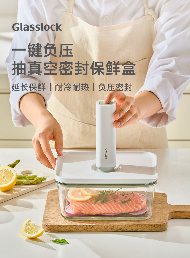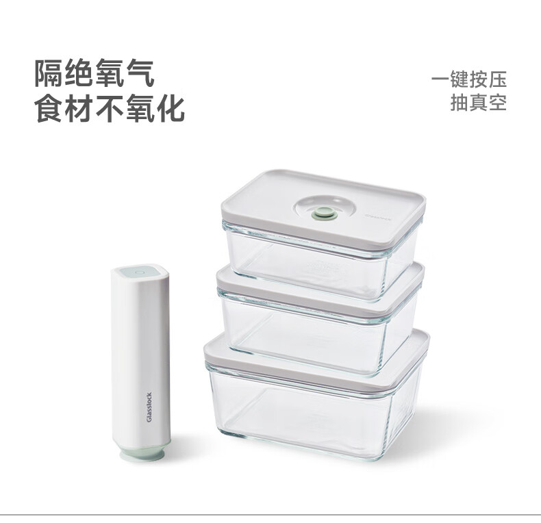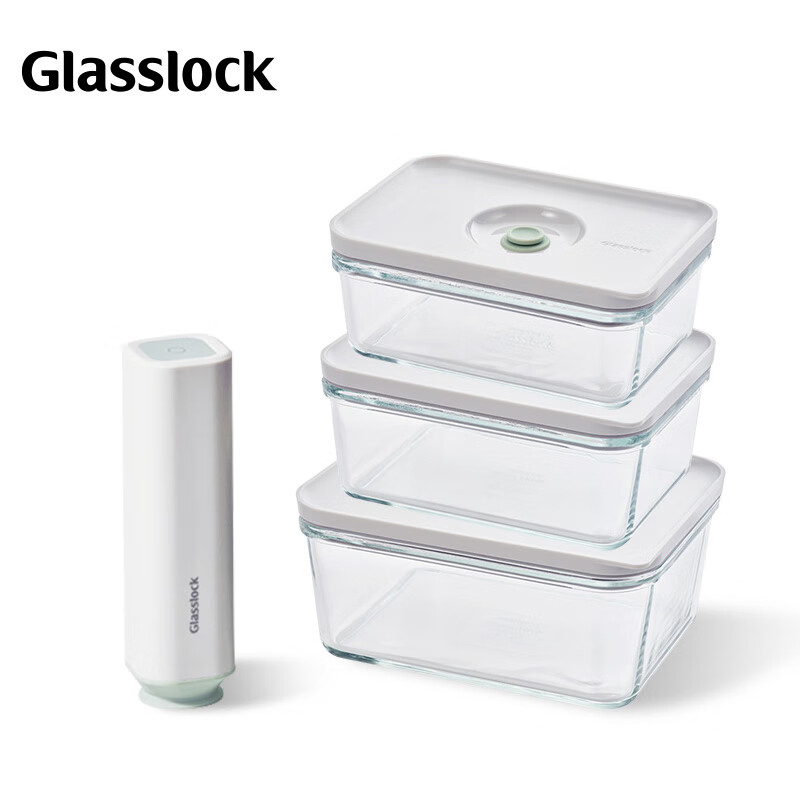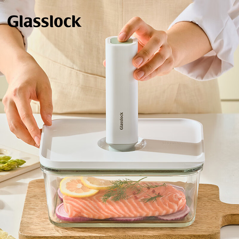 厨具  > 厨房储物  > 保鲜盒  >  GLASSLOCK  >  GLASSLOCK饭盒真空保鲜盒可抽真空大容量家用可微波炉收纳盒2300ml+电动泵 GL3529 /个