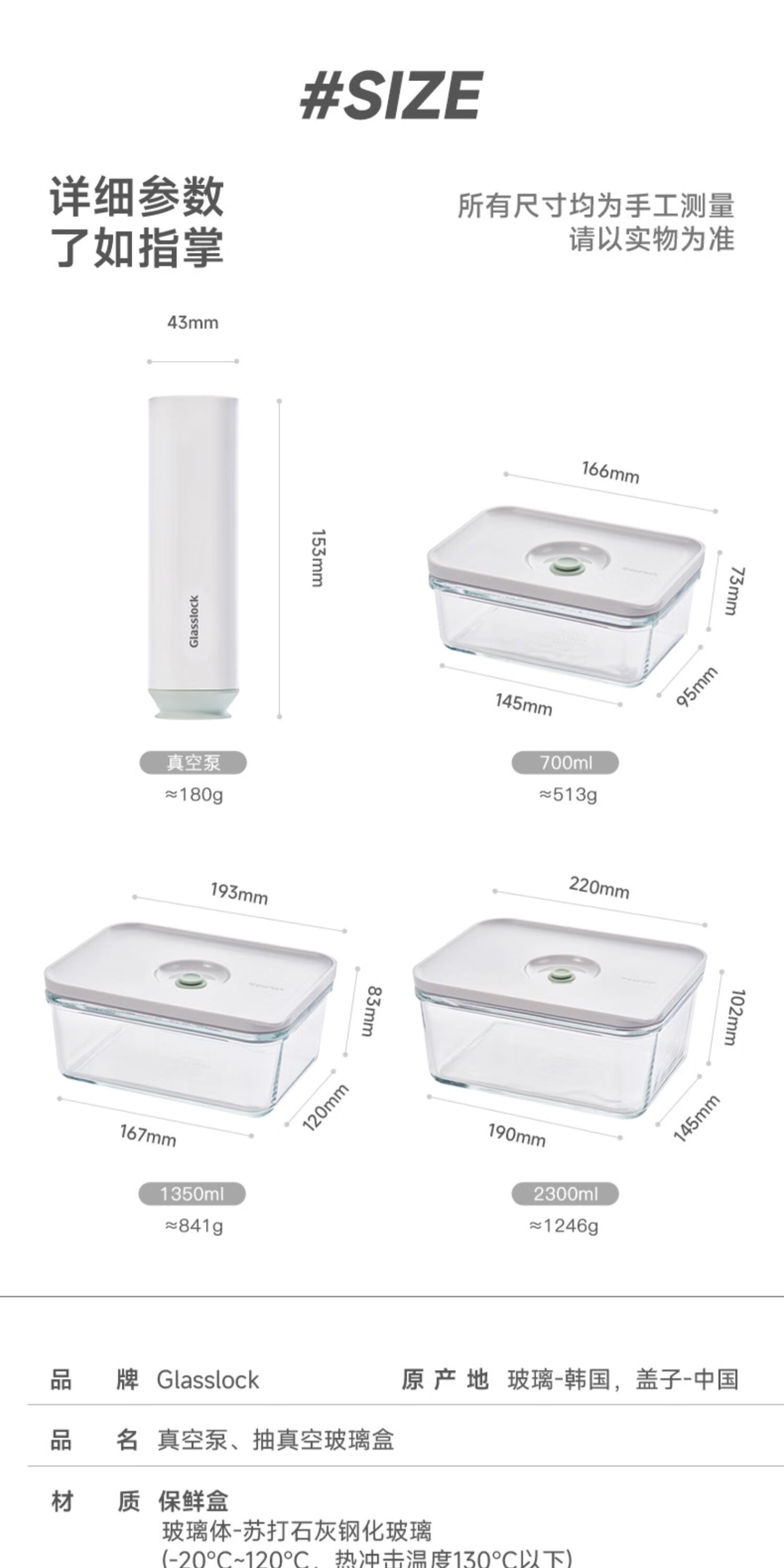 商品名称: GLASSLOCK饭盒真空保鲜盒可抽真空大容量家用可微波炉收纳盒2300ml+电动泵 GL3529 /个