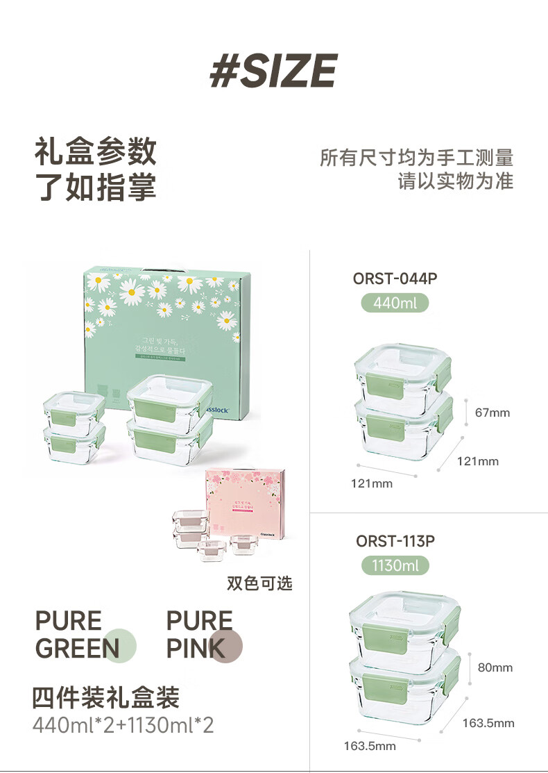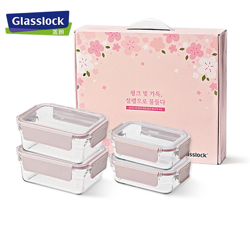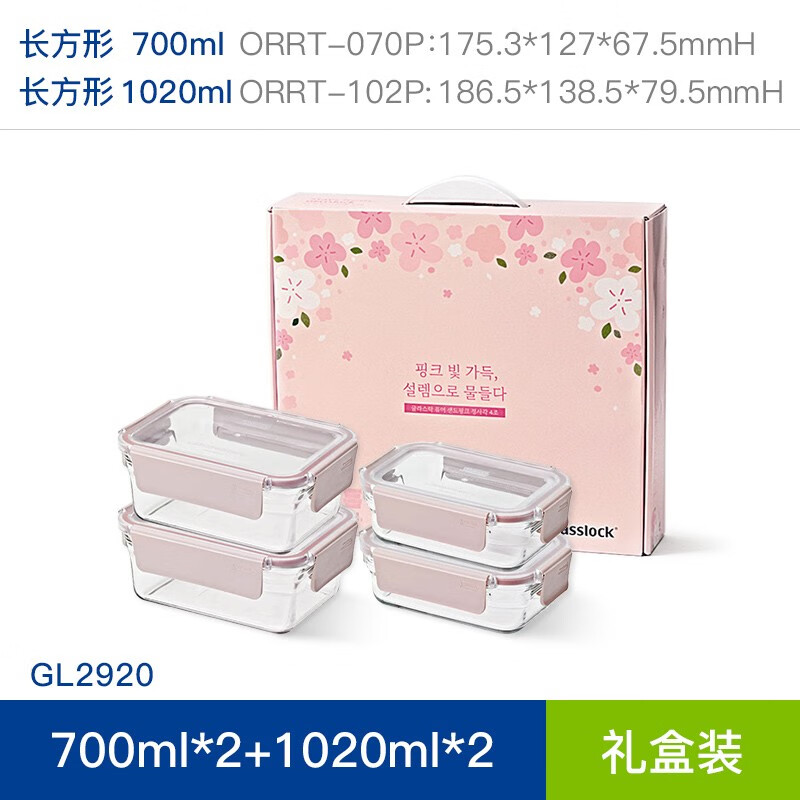 包装清单: Glasslock进口钢化保鲜盒 樱花礼盒4件套 GL2920(ORRT-070P粉色*2/ORRT-102P粉色*2)