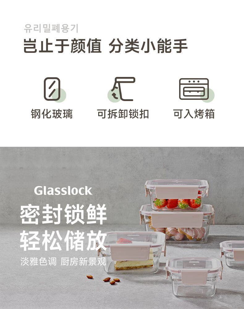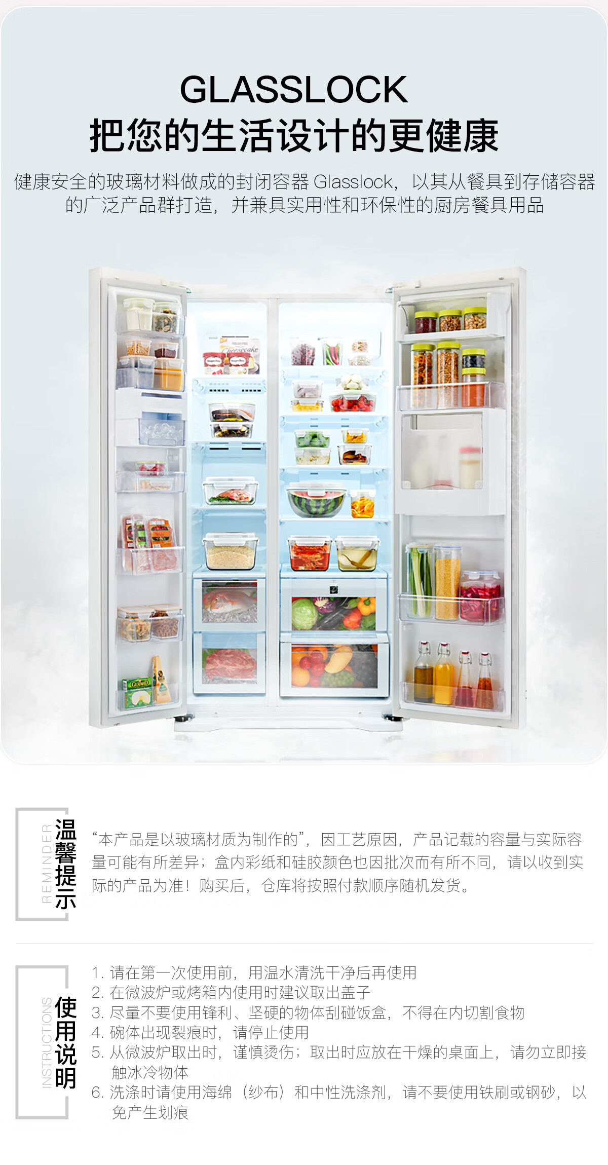• 商品名称:Glasslock钢化玻璃保鲜耐热适用上班族学生饭盒密封储物保鲜便当盒 礼盒装 GL2920/套