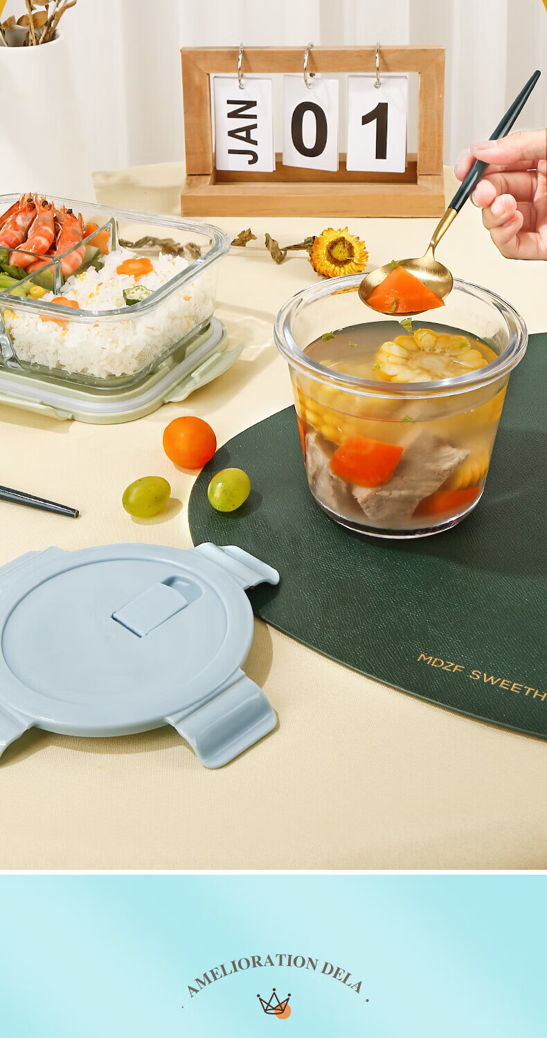 • 商品名称:希乐扣Cilock玻璃饭盒上班族带饭 家用带盖汤杯便携密封学生微波炉蓝汤碗720ml 中号汤碗/个